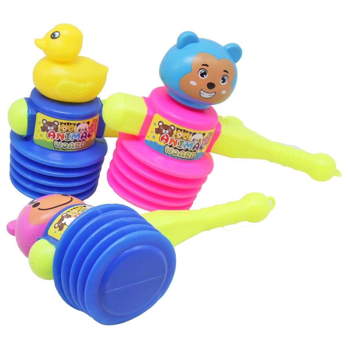 Яскравий пластиковий молоточок-пищалка для малюків. Молоточок пищить, якщо бити їм об поверхню чи руку. Має зручну ручку, за яку малюку зручно тримати іграшку. Виконаний у вигляді милого звірятка. Розмір молоточка – 17 х 24 х 9 см. Різні види в асортименті.