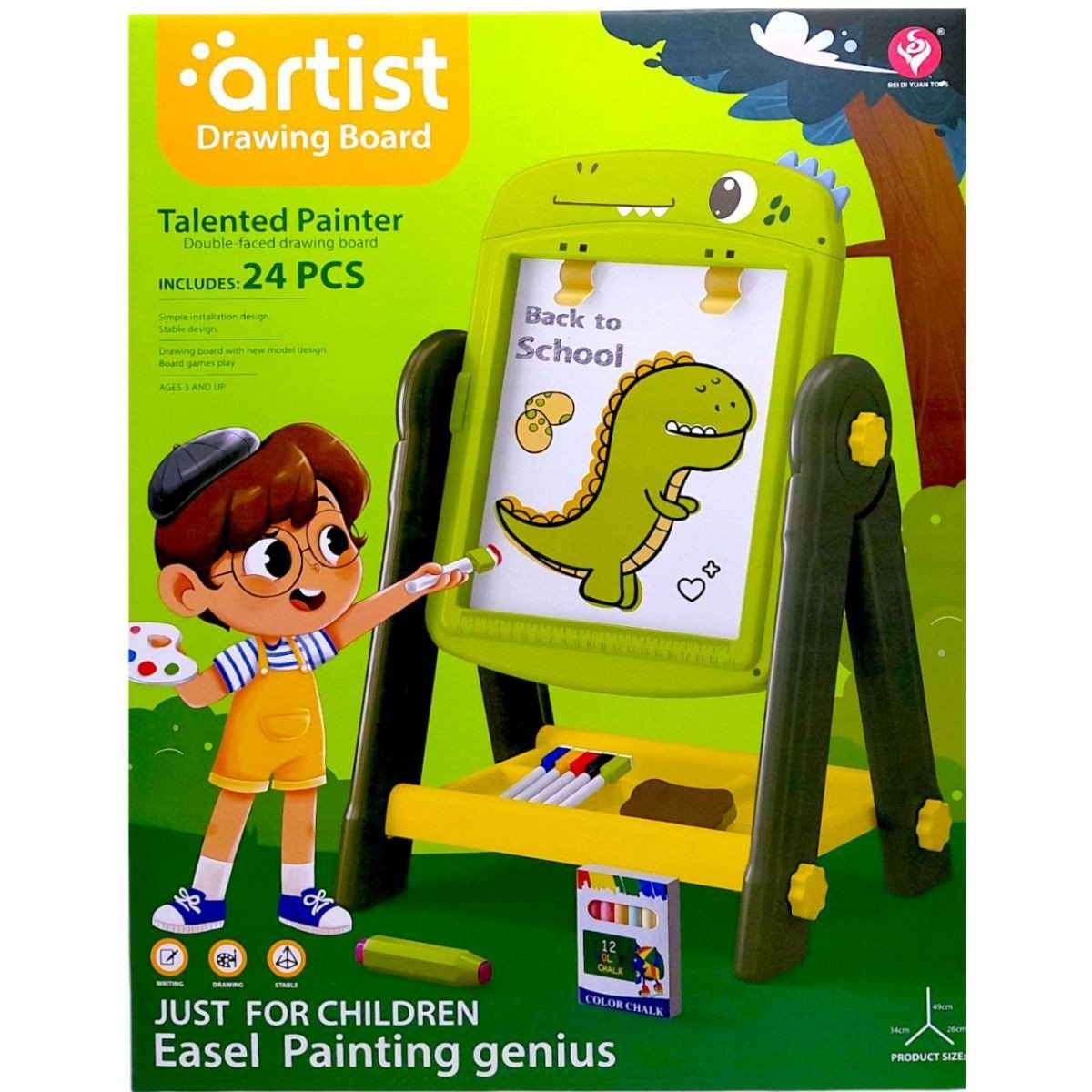 Набір дозволяє малювати, писати та створювати різні творчі роботи. Яскравий дизайн робить мольберт привабливим для дітей, а продумана конструкція допомагає підтримувати порядок під час гри чи занять.