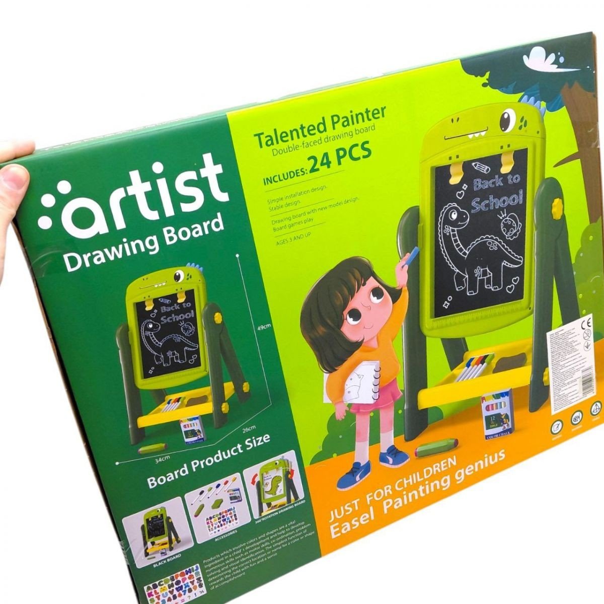 Дитячий мольберт - зручний набір для творчості, який допоможе дитині розвивати уяву, художні навички та дрібну моторику. Модель має компактну конструкцію з робочою поверхнею для малювання та поличкою для розміщення аксесуарів. Завдяки стійкій підставці мольберт зручно використовувати вдома під час занять творчістю або навчання.