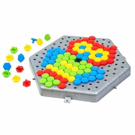 Мозаїка включає 275 елементів різних кольорів, розмір одного елемента 1,3 см. Комплект упакований у зручну пластикову коробочку яка перетворюється на ігрове поле зі спеціальними отворами для мозаїки. Для дітей віком від 3-х років.