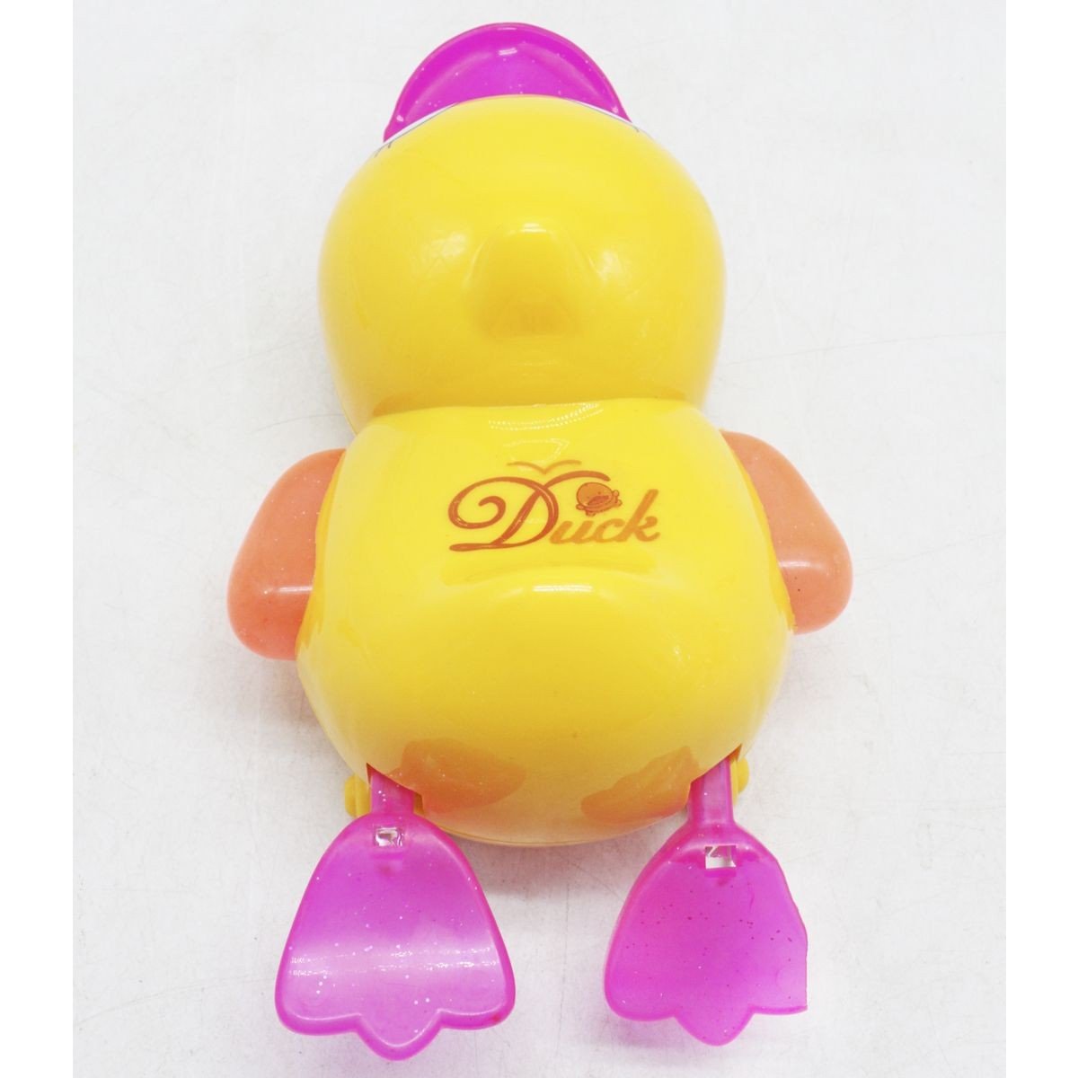 Пластикова музична іграшка у вигляді качки, яка може їздити в різні боки та весело перебирати лапками. При включенні починає грати весела мелодія і вмикається яскраве підсвічування по всьому корпусу. Іграшка їздить у довільних напрямках. Працює від 3-х батарейок типу АА.