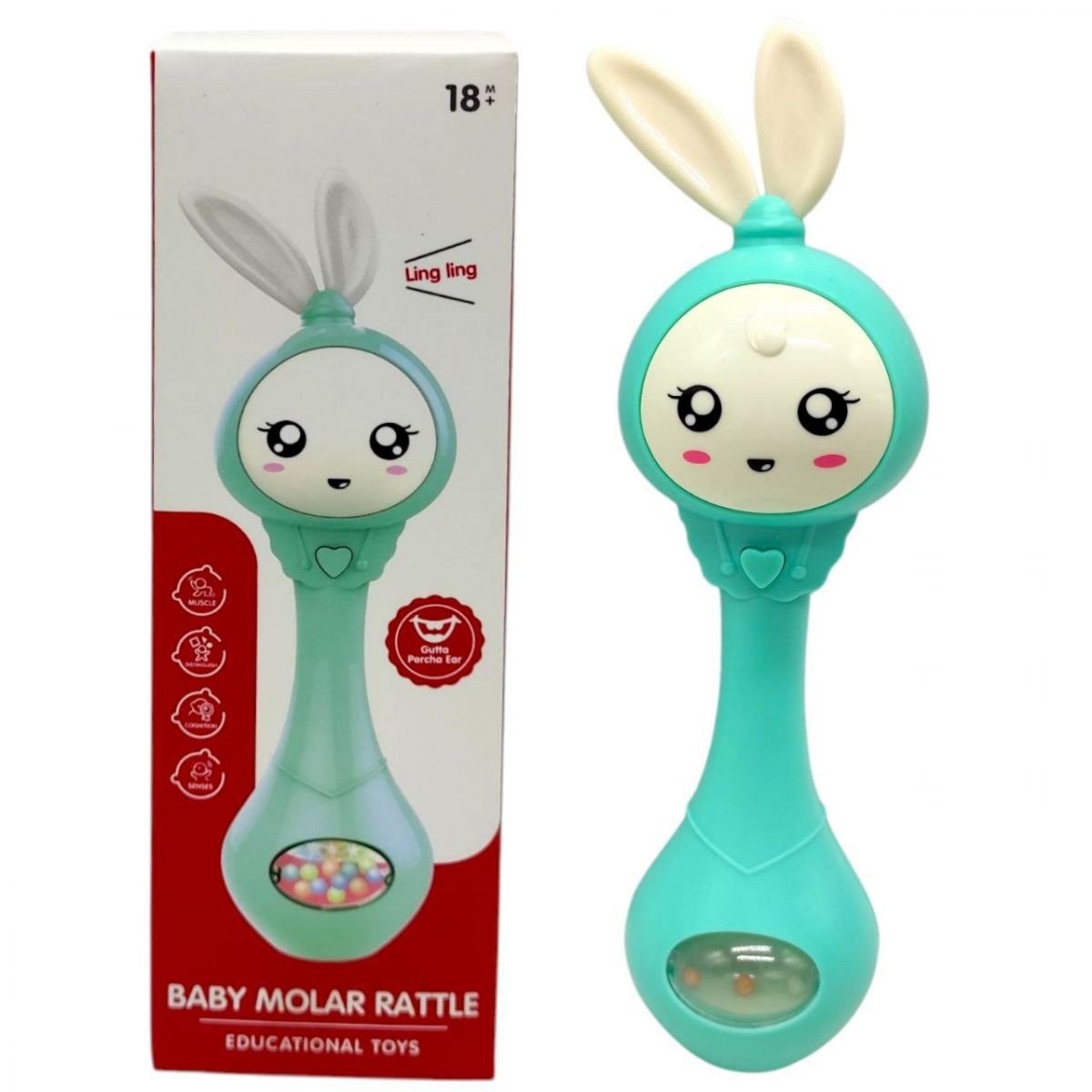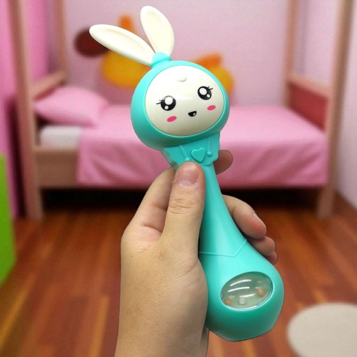 Опис Музичне брязкальце "Зайчик" зі світлом, звук (БІРЮЗОВИЙ)