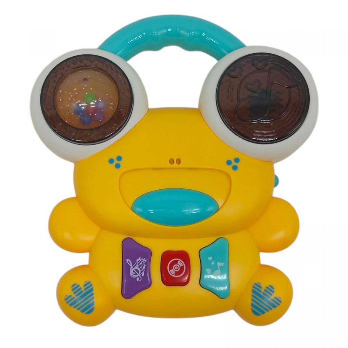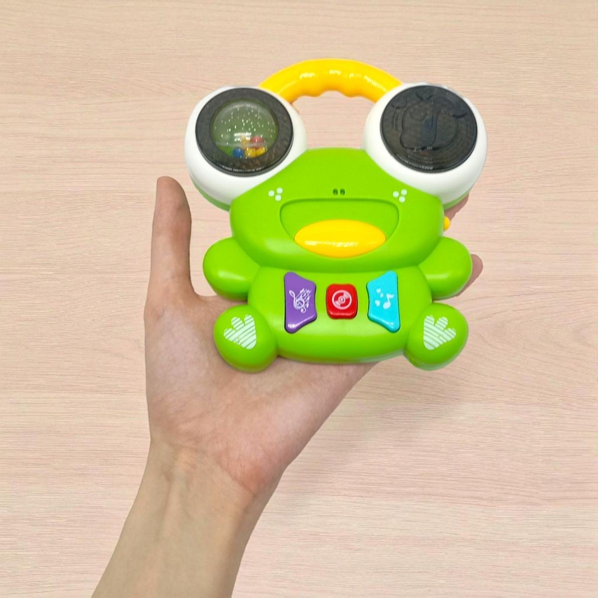 З музичним жабенятком у нудьги немає жодних шансів! Іграшку озвучено українською мовою, тож вона чудово допоможе малюкові з раннім розвитком мовлення. Цей яскравий музичний інструмент, стилізований під тваринку, також є мініпрогравачем, на якому дитина зможе прослухати записи цікавих та повчальних казок, а також веселих пісень, окрім цього ще можна увімкнути мудрі скоромовки та іграшка імітує звуки барабанів! Одне око жабенятко виконано у вигляді брязкальця. Розвиває дрібну моторику, музикальний слух та покращує увагу.