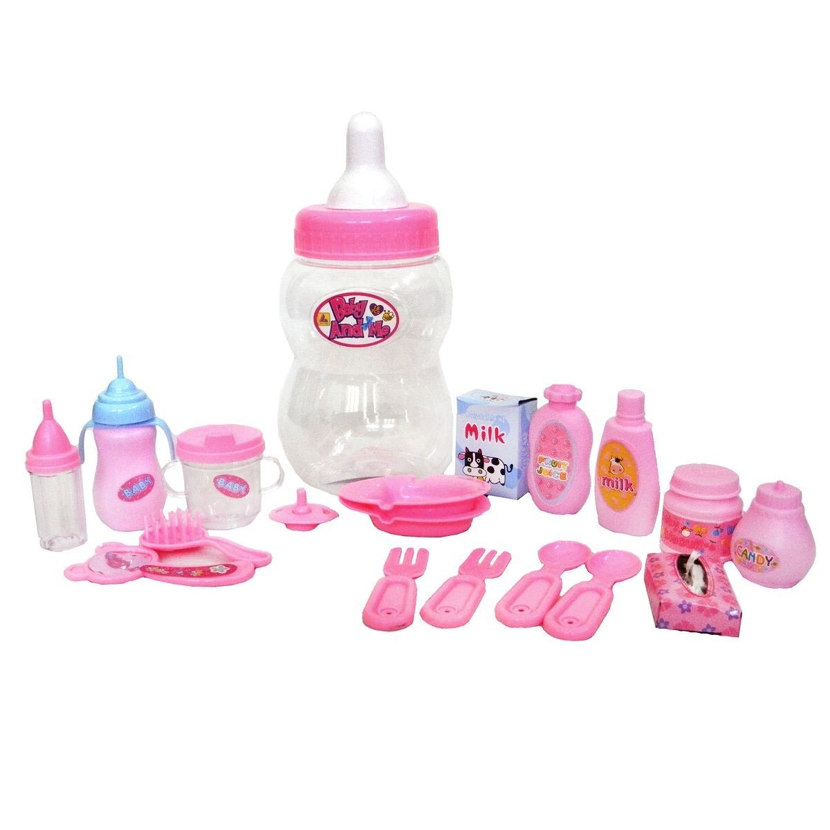 Набір аксесуарів для ляльок, який включає в себе все необхідне для догляду за ляльками і пупса. Пляшку можна використовувати як для зберігання аксесуарів, так і як скарбничку, так як на кришці є спеціальна проріз.