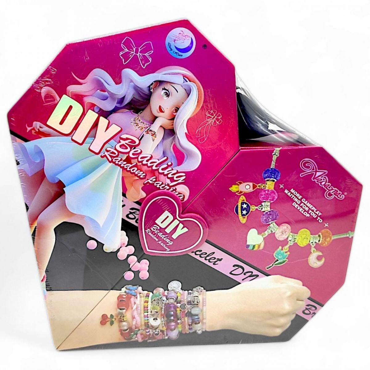 Набір прикрас "Сумочка Серце" – це чудовий набір для юних модниць, який дозволить виявити креативність та створити унікальні аксесуари своїми руками. У комплект входять металеві та пластикові намистини різних форм та кольорів, а також міцна волосінь. З набору можна зробити безліч прикрас: стильні браслети, витончені намисто та інші вироби.