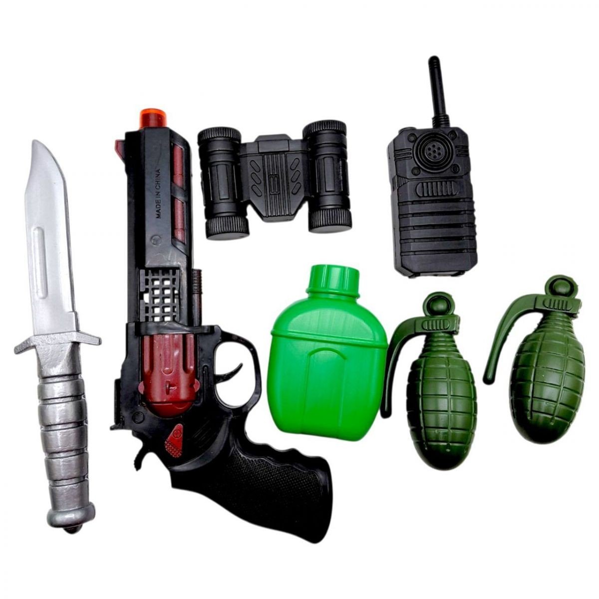 Набір Армії: пістолет, фляга, граната 2шт, бінокль, рація (ТРІСКАЧКА)