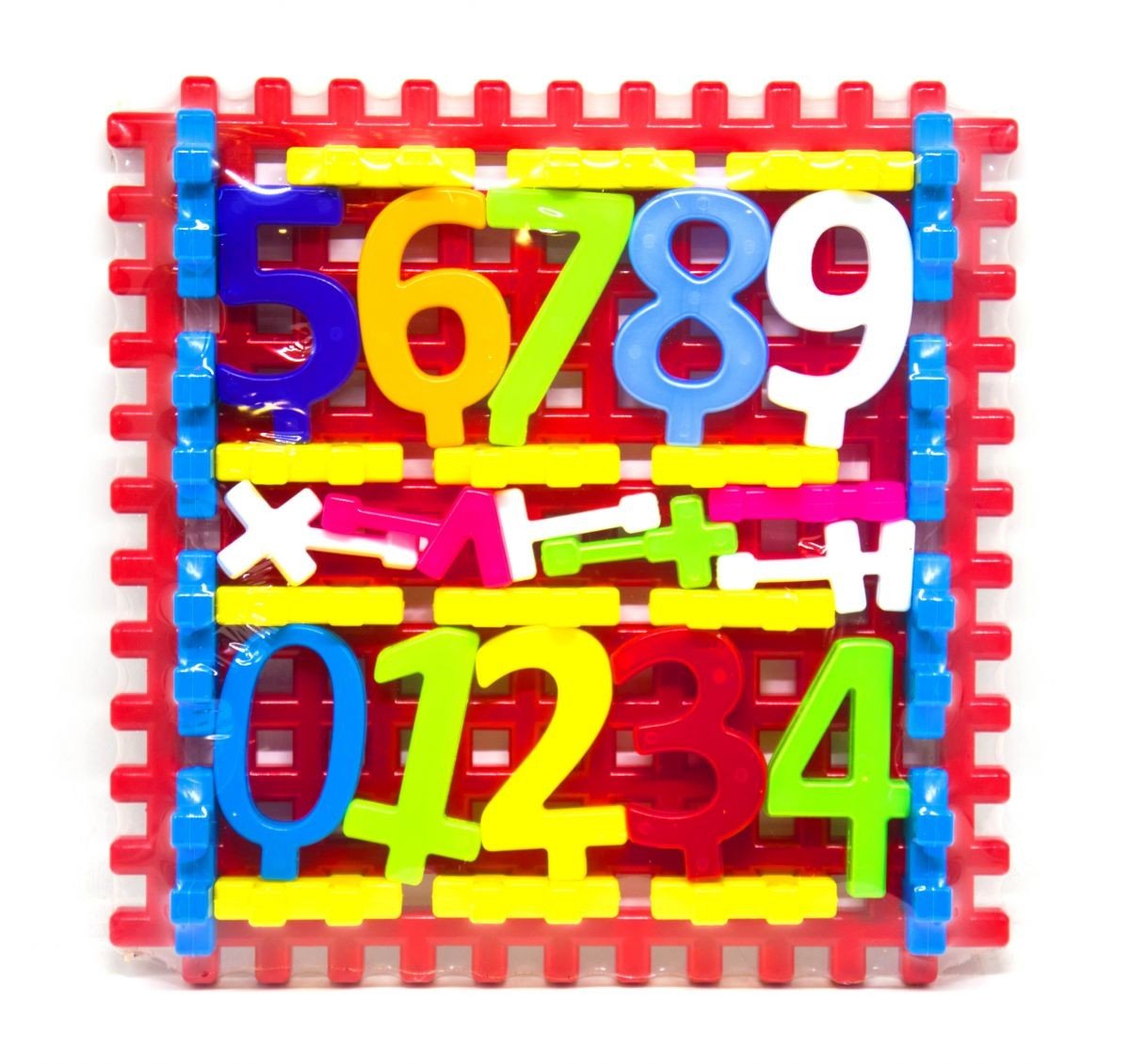 Набір дитячий "Математика №1". Складається з ігрового поля (37 х 37 см), цифр від 0 до 9 і арифметичних знаків. Цифри і знаки на ніжці-підставці.