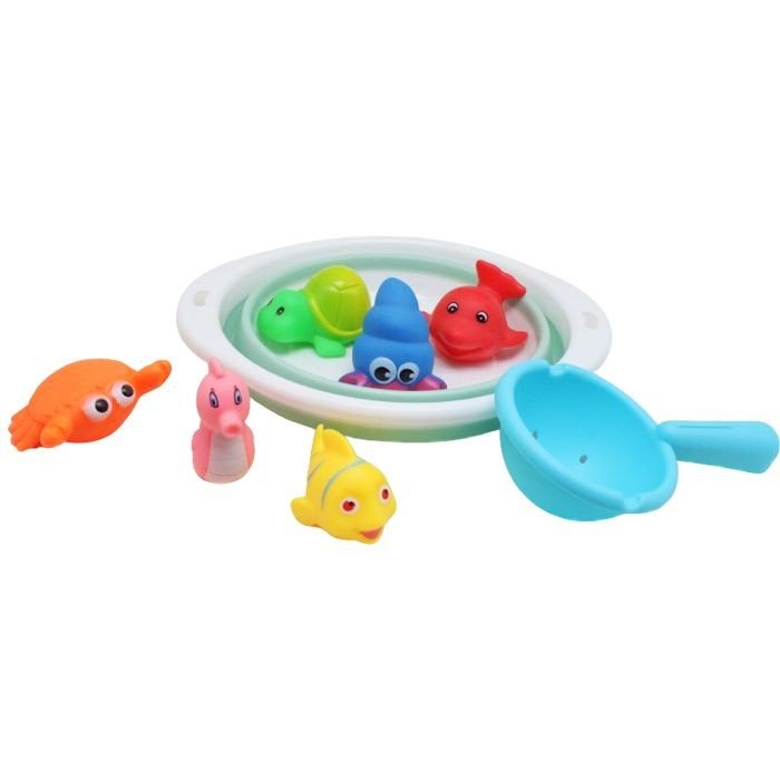 Набір іграшок для купання подарує малюку море позитивних емоцій. До комплекту входить пластикова ванночка, пластиковий ківш, 6 гумових іграшок-звіряток. Подібні іграшки чудово розвивають дрібну моторику та роблять процес купання веселішим. Виконано з якісних, приємних на дотик матеріалів. Для дітей старше 3-х років.