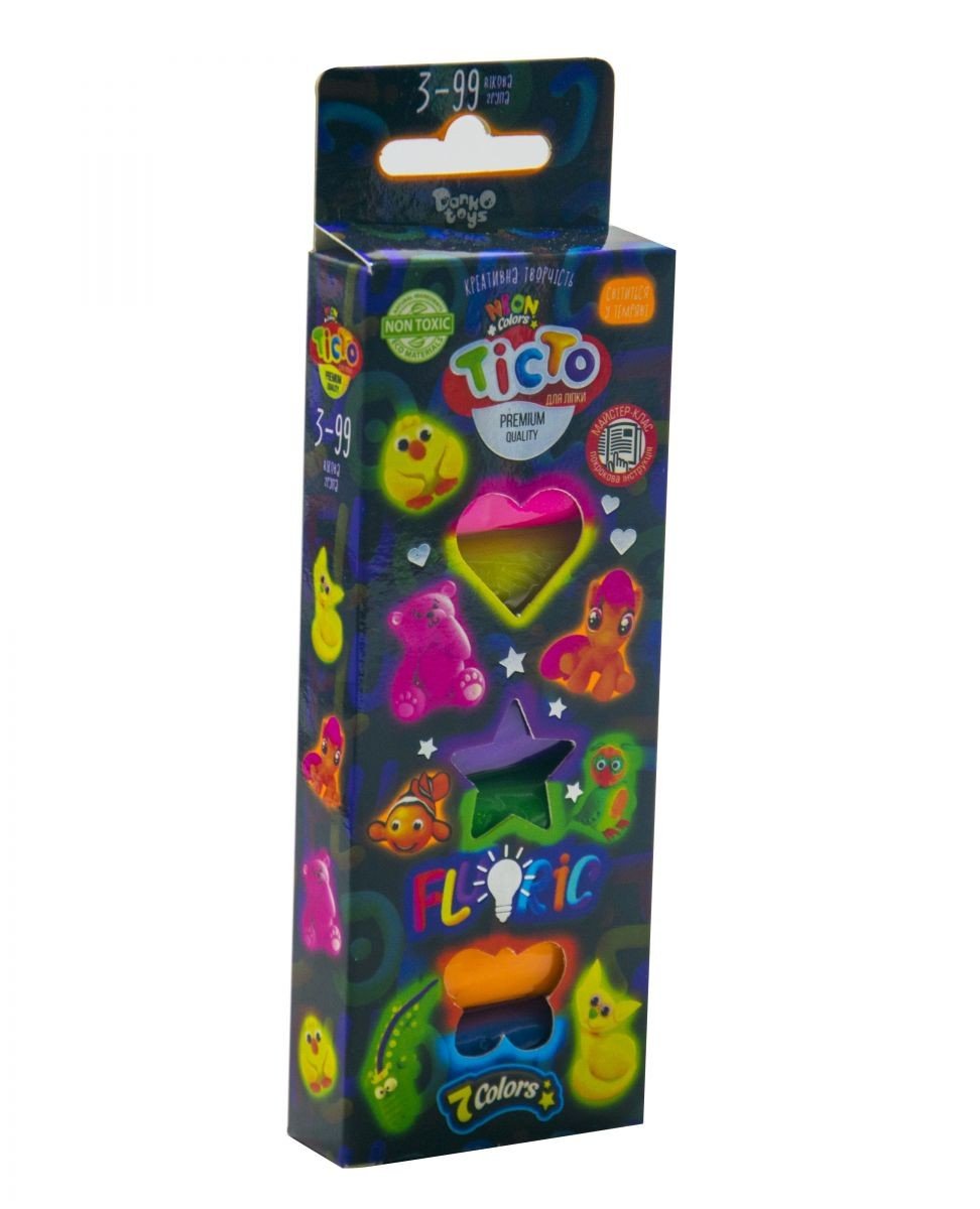 Тісто "Fluoric" - це набір креативної творчості, унікальність якого полягає в складі матеріалу і його дивну здатність - світиться в темряві. 7 кольорів по 20 р