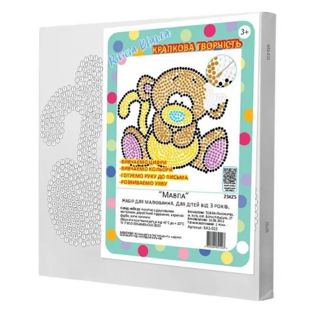 Малювання - чудовий спосіб для дітей пізнавати світ мистецтва. Кожен комплект включає надруковане зображення на полотні розбите за номерами, де числа вказують на колір номера фарби, якою необхідно розмалювати картину ватною паличкою. Цей захопливий творчий процес допомагає дітям розвивати свою увагу, моторику руки, уяву та стане стартом до навчання вашої дитини цифрам, кольорам, підготує руку до письма. Змішування фарб дозволить дитині отримати нові кольори, що стане справжньою магією для неї. Робота з фарбами на полотні додає креативності, надаючи дітям можливість втілити свої ідеї в реальність та насолоджуватися мистецтвом в процесі навчання та стане чудовим подарунком для маленьких художників, які люблять експериментувати.