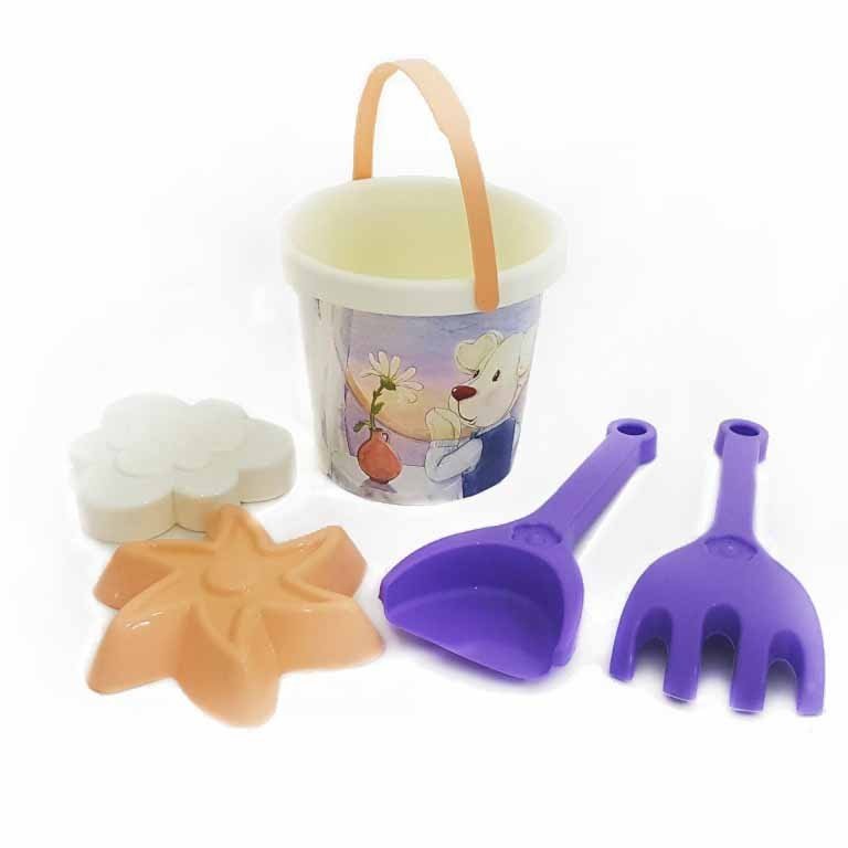Бренд: Wader Упаковка: Сітка Колір: Різнобарв'я Габарити в упаковці: 20 x 15 x 15 см Габарити без упаковки: 20 x 15 x 15 см Країна виробник: Україна Матеріал: Пластик Комплектація: 5 ел .: ведро, лопатка, граблі, 2 пасочки