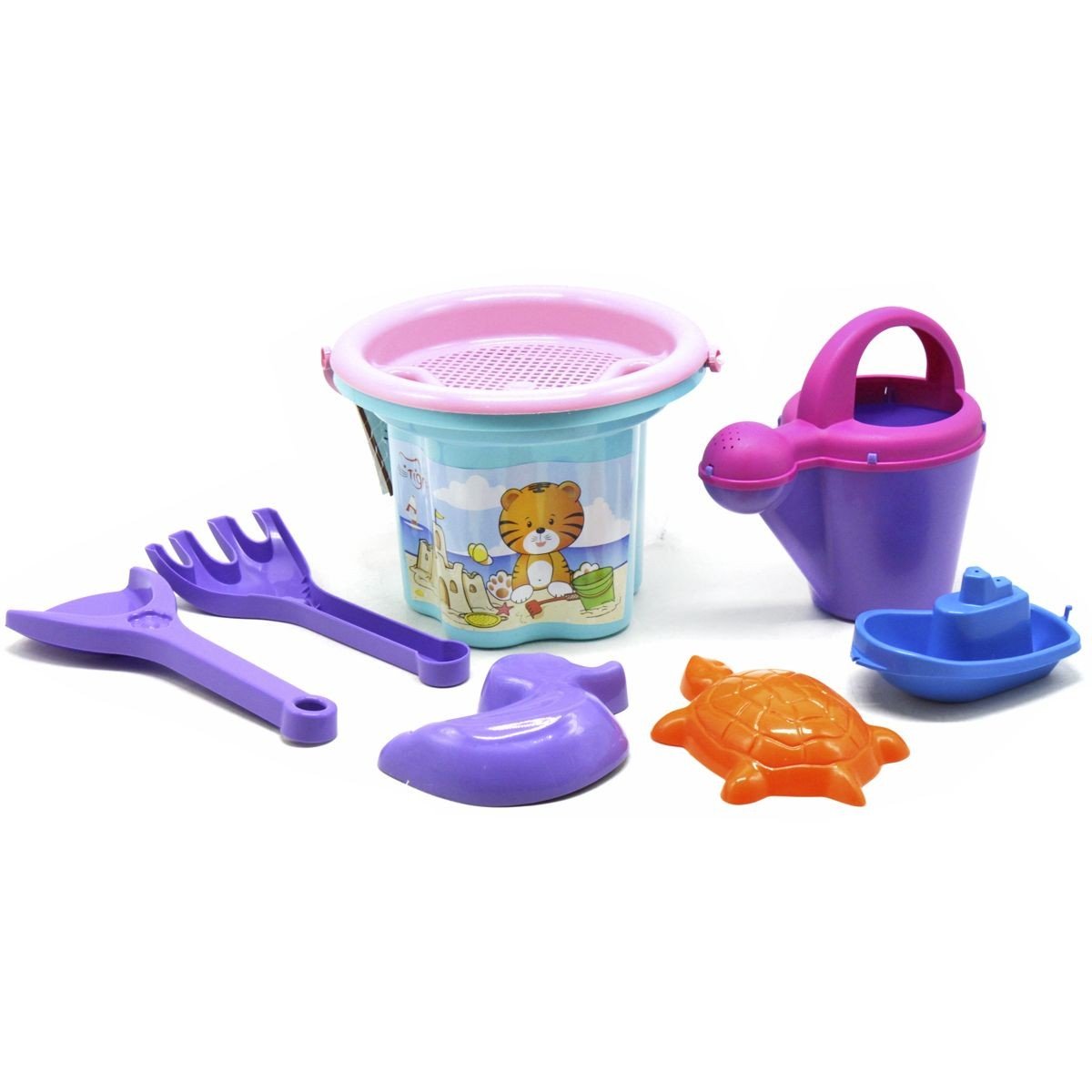 Набір для гри з піском буде чудовим подарунком для малюка. У комплекті є: цеберко, лопатка, ситечко, граблі, 2 формочки для піску, лійка та кораблик. Розмір відра 14х20х20 см. Виконано з якісних та безпечних матеріалів. Для дітей від року.