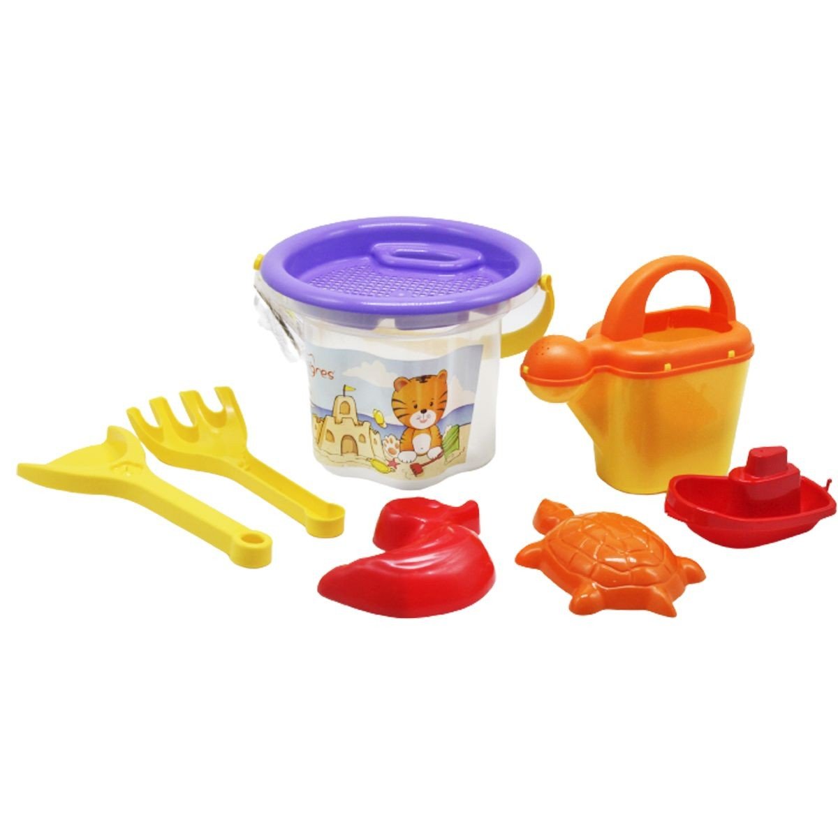Набір для гри з піском буде чудовим подарунком для малюка. У комплекті є: цеберко, лопатка, ситечко, граблі, 2 формочки для піску, лійка та кораблик. Розмір відра 14х20х20 см. Виконано з якісних та безпечних матеріалів. Для дітей від року.