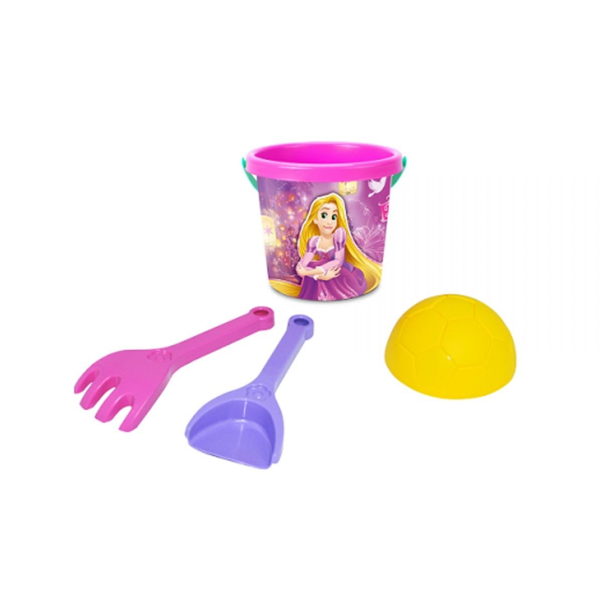Набір для піску "Принцеси" Дісней з термонаклейка. У набір входять 4 елемента: відерце, пасочка, лопатка, грабельки.