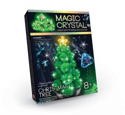 Набір для проведення дослідів "MAGIC CRYSTAL" Різдвяна ялинка. Вирощування кристалів - дуже цікаве заняття, причому займатися ним можуть не тільки хіміки і фізики, а й звичайні школярі, і навіть дорослі. Зрозуміло такі досліди треба проводити тільки під наглядом дорослих і тільки з безпечними речовинами. У природних умовах такі кристали ростуть не один рік і навіть не одну сотню років, а и вас є можливість виростити це чудо протягом декількох годин. У наборі: розчин "рідкі кристали", пластиковий контейнер-підставка, картонна заготівля, інструкція.