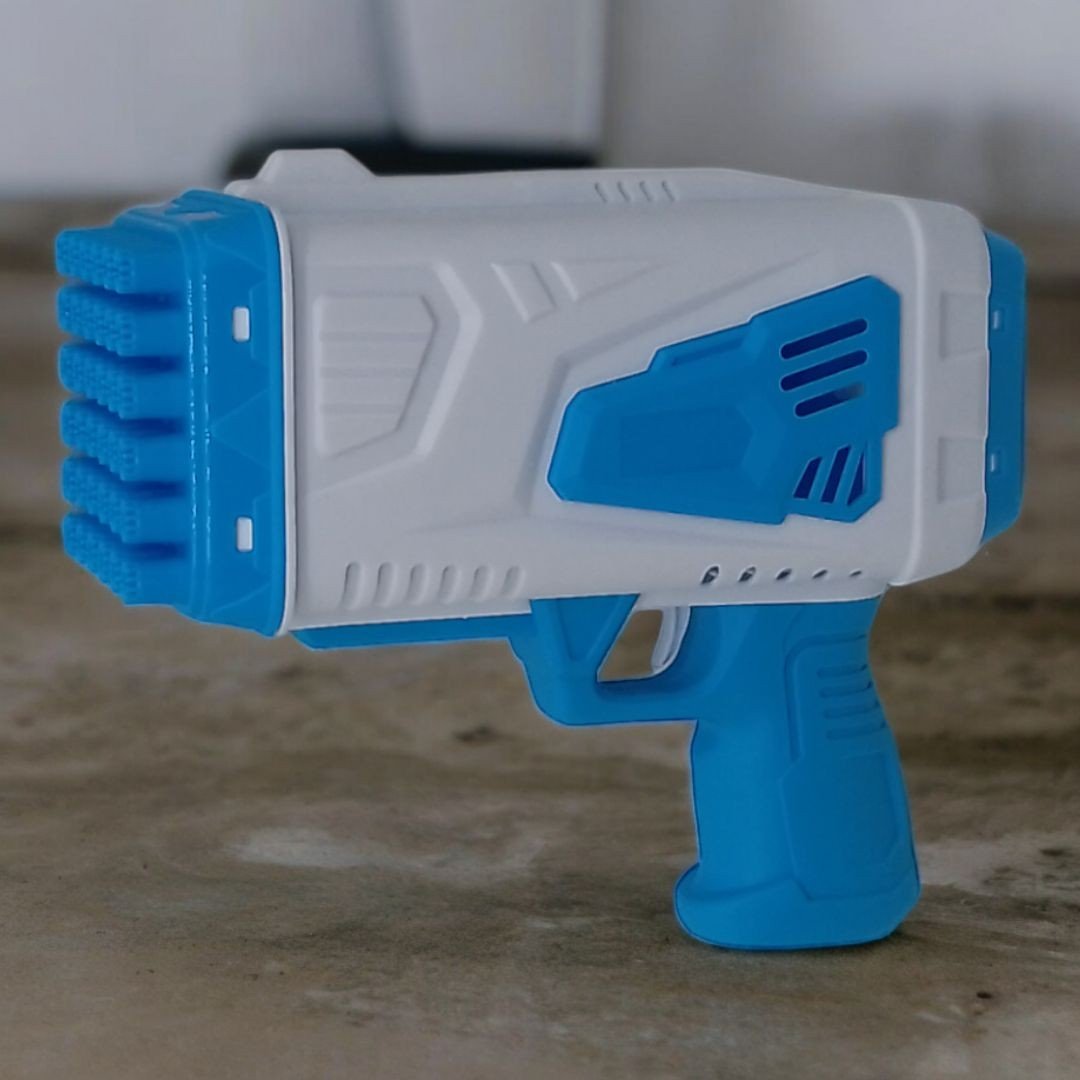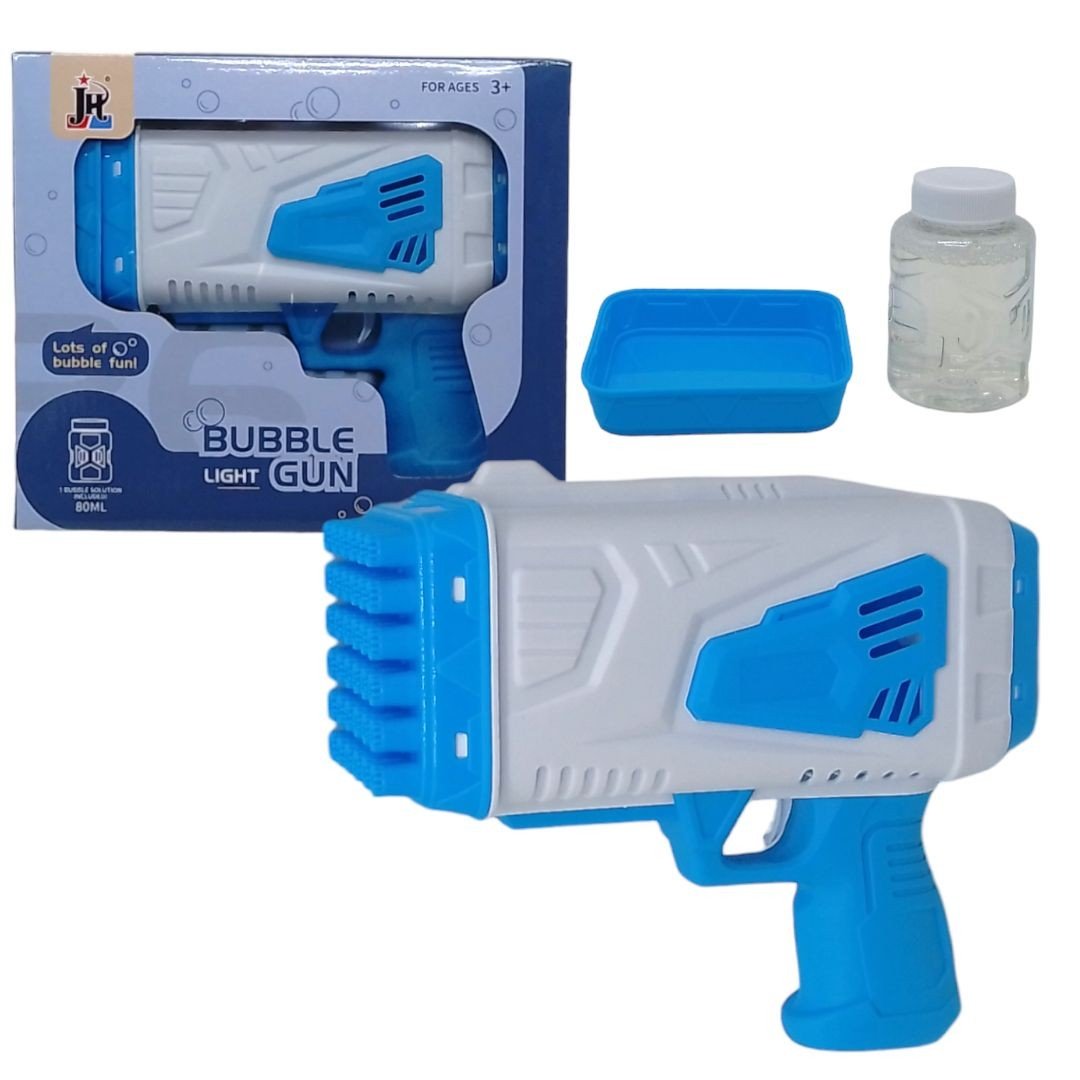 Пістолет-кулемет "Bubble Gun" - це іграшка для створення мильних бульбашок, яка дозволяє автоматично видувати багато бульбашок за короткий час. Принцип роботи пристрою: занурте отвори у рідину, що йде в комплекті з пістолетом, натисніть на курок і він почне видувати безліч бульбашок. Розмір іграшки: 19 х 8 х 15 см. З підсвічуванням. Працює від батарейок АА (немає в комплекті).