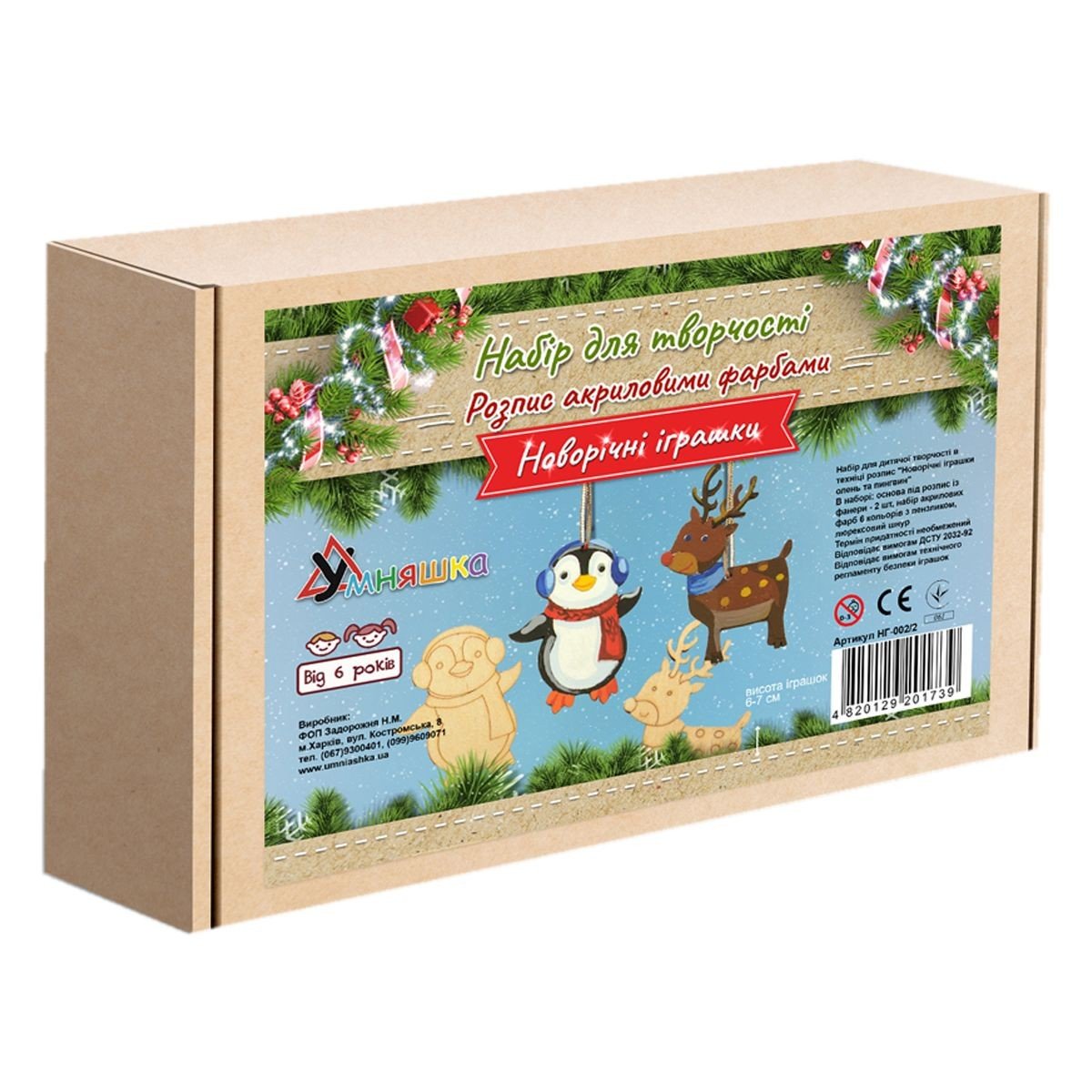 Опис Набір для розпису акриловими фарбами "Новорічні іграшки. Олень і пінгвін"
