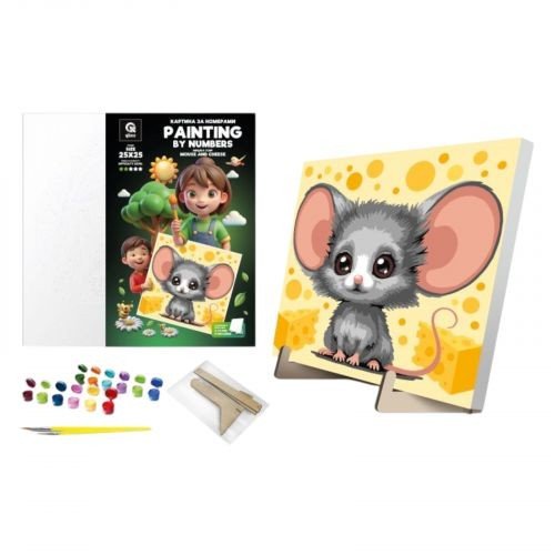 Опис Набір для розпису по номерах 25х25 см "Мишка і Сир" з деревʼяною підставкою