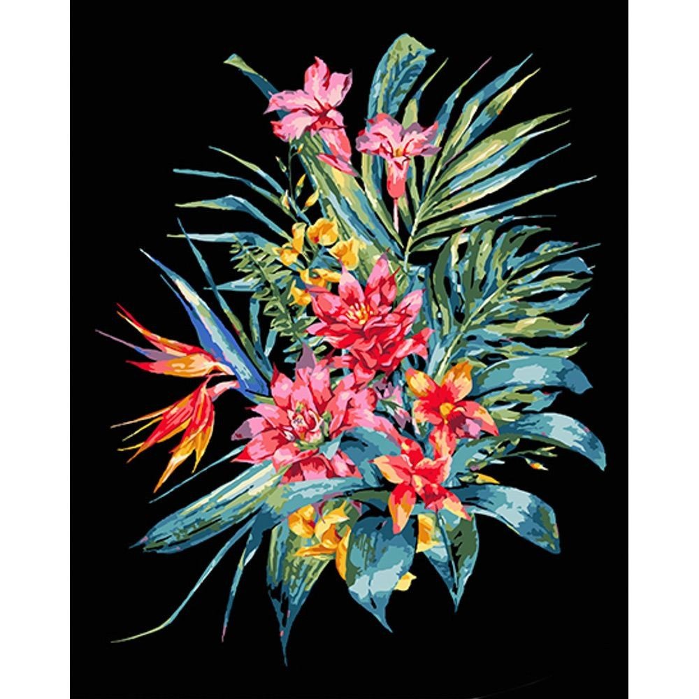 Опис Картина за номерами на чорному фоні "Екзотичний букет" 40х50