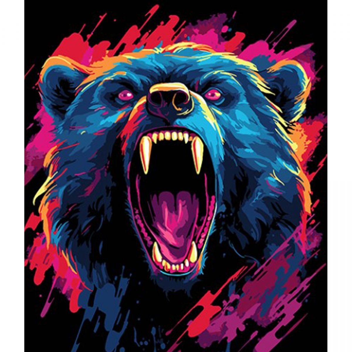 Опис Картина за номерами на чорному фоні "Лють медведя" 30х40