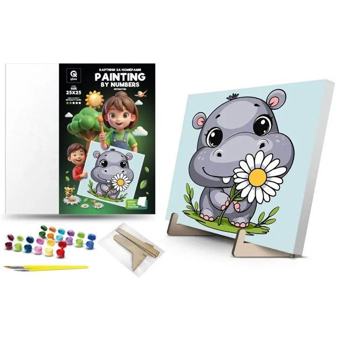 Опис Картина по номерах на підставці "Бегемотик" (25х25 см)