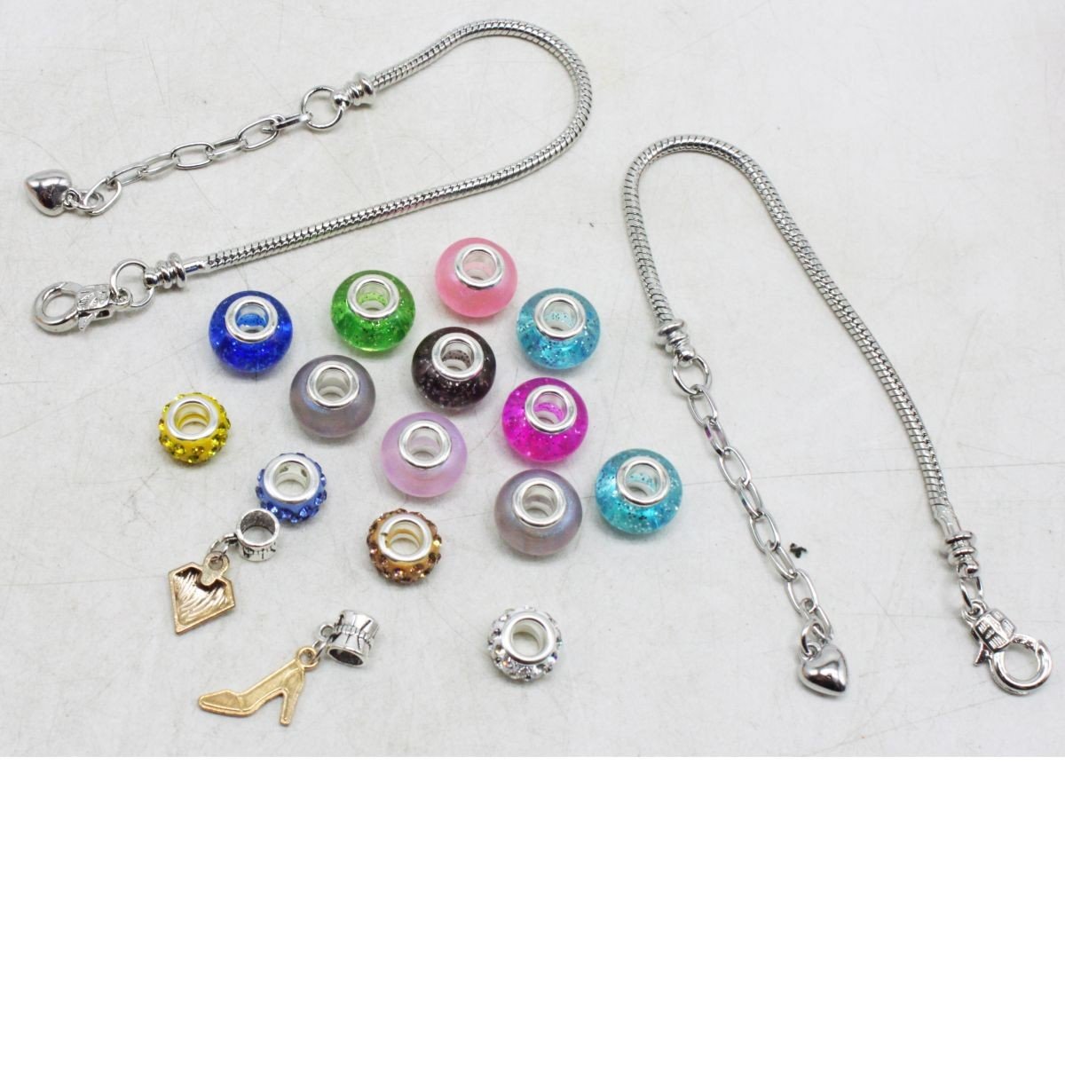 Подарунковий наборчик, з яким можна створити 2 красиві браслетики своїми руками. Укомплектований у гарний подарунковий пакет із ручками. Усередині нього знаходиться мішечок з кольоровими намистинами, підвісками та двома металевими основами для браслета. Також у наборі є оригінальна двостороння рамка із плівкою.