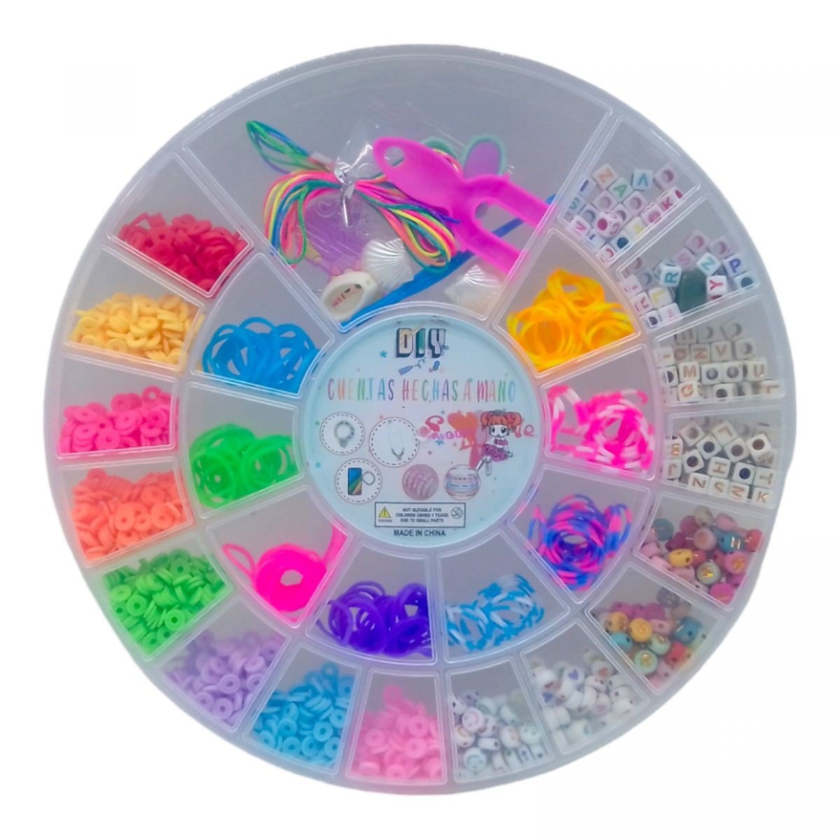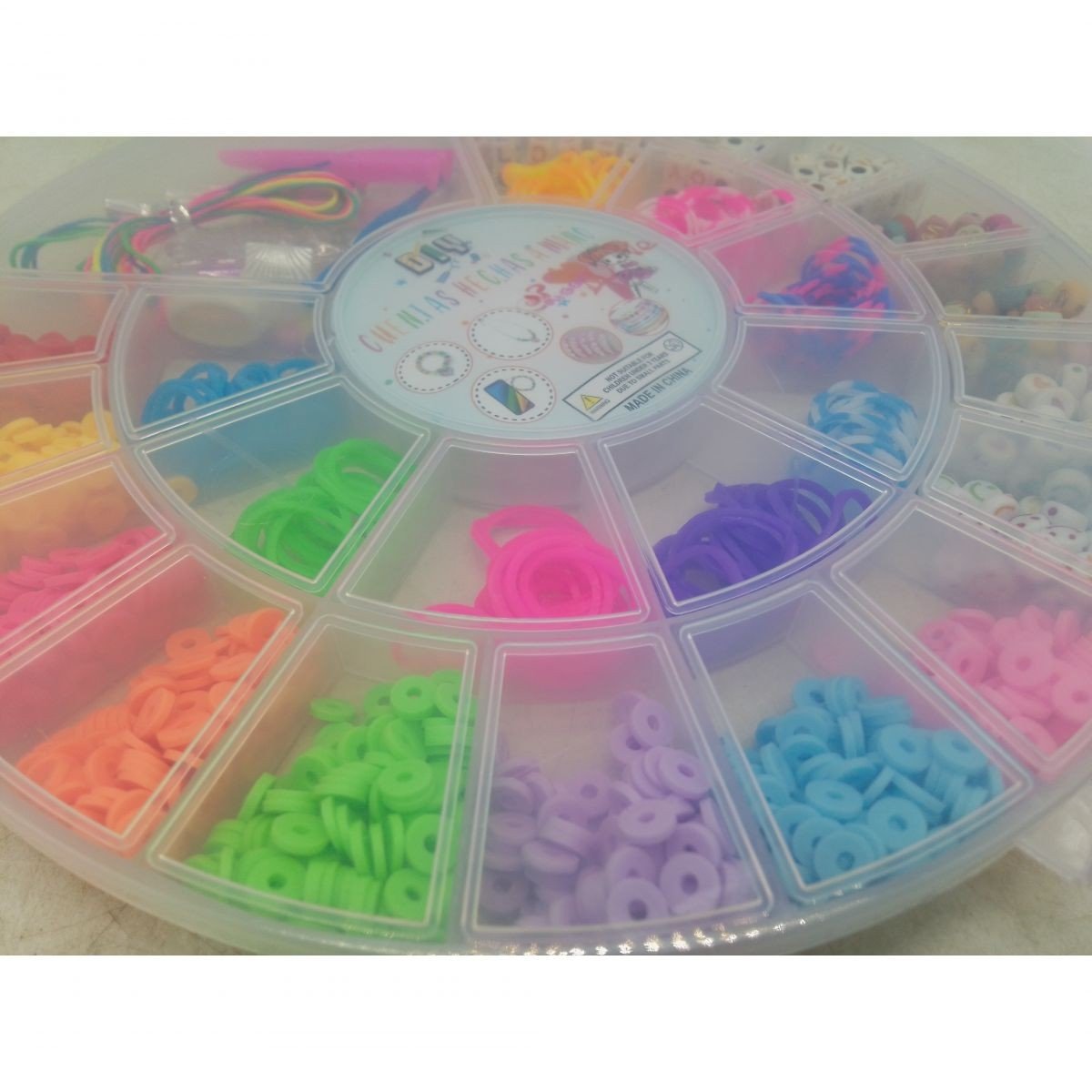 Бренд: MIC Упаковка: Контейнер Колір: Різнобарв'я Вага з упаковкою: 230 г Габарити в упаковці: 2 x 22 x 22 см Габарити без упаковки: 2 x 22 x 22 см Країна виробник: Китай Матеріал: Комбінований Комплектація: 8 видів гумок, 16 видів намистин, комплект шнурків, гачок, рогатка для плетіння