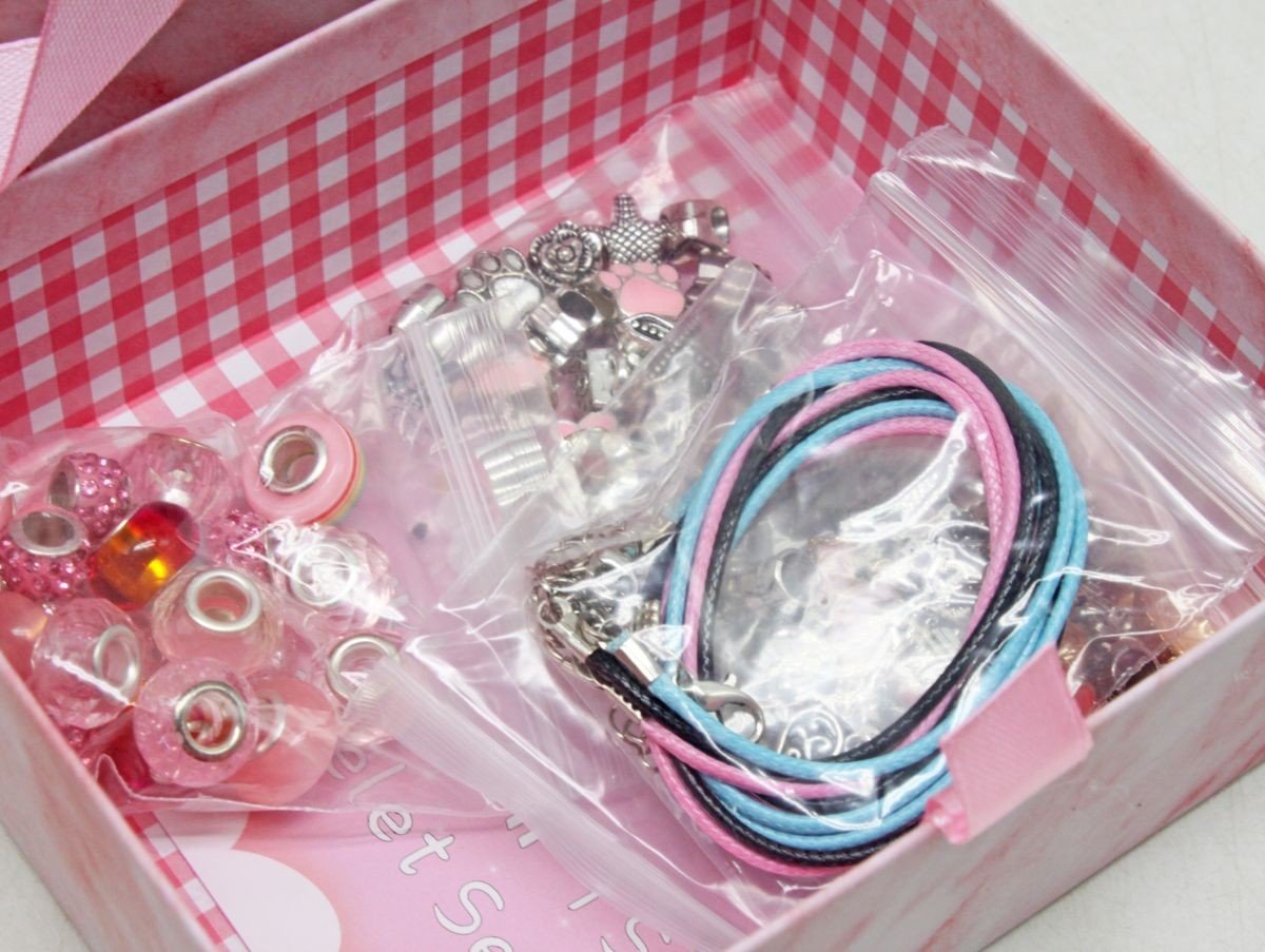 Набір для створення прикрас своїми руками, укомплектований гарну подарункову коробочку. Усередині можна знайти різнокольорові шнурочки для створення кольє, металеві ланцюжки для браслетів, металеві підвіски та кольорові намистини. Також у наборі є буклет з інструкцією та прикладами прикрас, які можна створити. Використовуючи надані елементи, можна самостійно вибрати, чим прикрасити аксесуар та змінювати його дизайн залежно від настрою. Набір буде чудовим подарунком як дитині, так і дорослому.