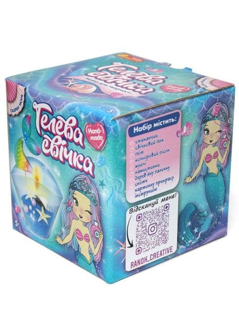 Бренд: Ranok Creative Упаковка: Коробка Колір: Синій Вага з упаковкою: 205 г Габарити в упаковці: 12 x 12 x 11.5 см Країна виробник: Україна Матеріал: Комбінований Комплектація: стаканчик, свічковий гель, ґнот, кольоровий пісок, мушлі, намистини, дерев'яна паличка, скотч, картонна прикраса, покрокова інструкція