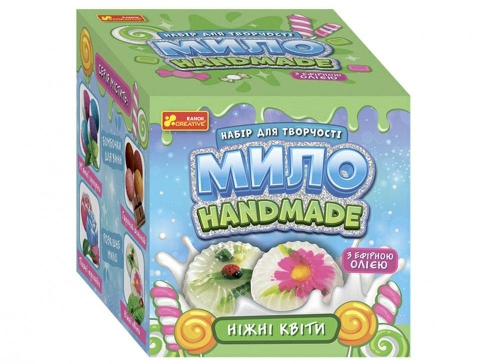 Упаковка: Коробка Колір: Різнокольоровий Вага з упаковкою: 142 г Габарити в упаковці: 11.5 x 11.5 x 11.5 см Країна виробник: Україна Матеріал: Комбінований Комплектація: прозора мильна основа; блистерні форми для мила; елементи декору; ефірне масло; рослинне масло-основа; білий пігмент; пластикова ложка; піпетка; інструкція