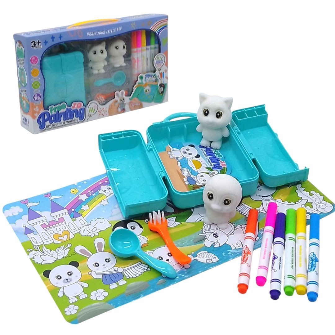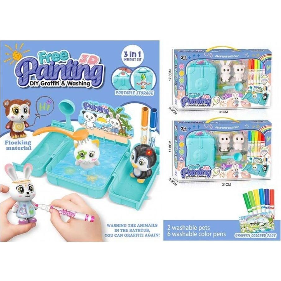 Набір для творчості "DIY Graffiti and Washing: Тваринки" — це захоплива гра для малюків. У комплекті: 2 м’які флоксові фігурки тваринок, 6 кольорових фломастерів, бокс-ванночка, ложка та щіточка. Розмалюй улюблених звірят, а потім легко змий малюнок водою та створи новий образ! Ідеально для розвитку уяви, дрібної моторики та творчого мислення.