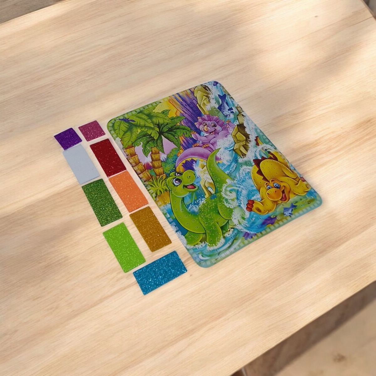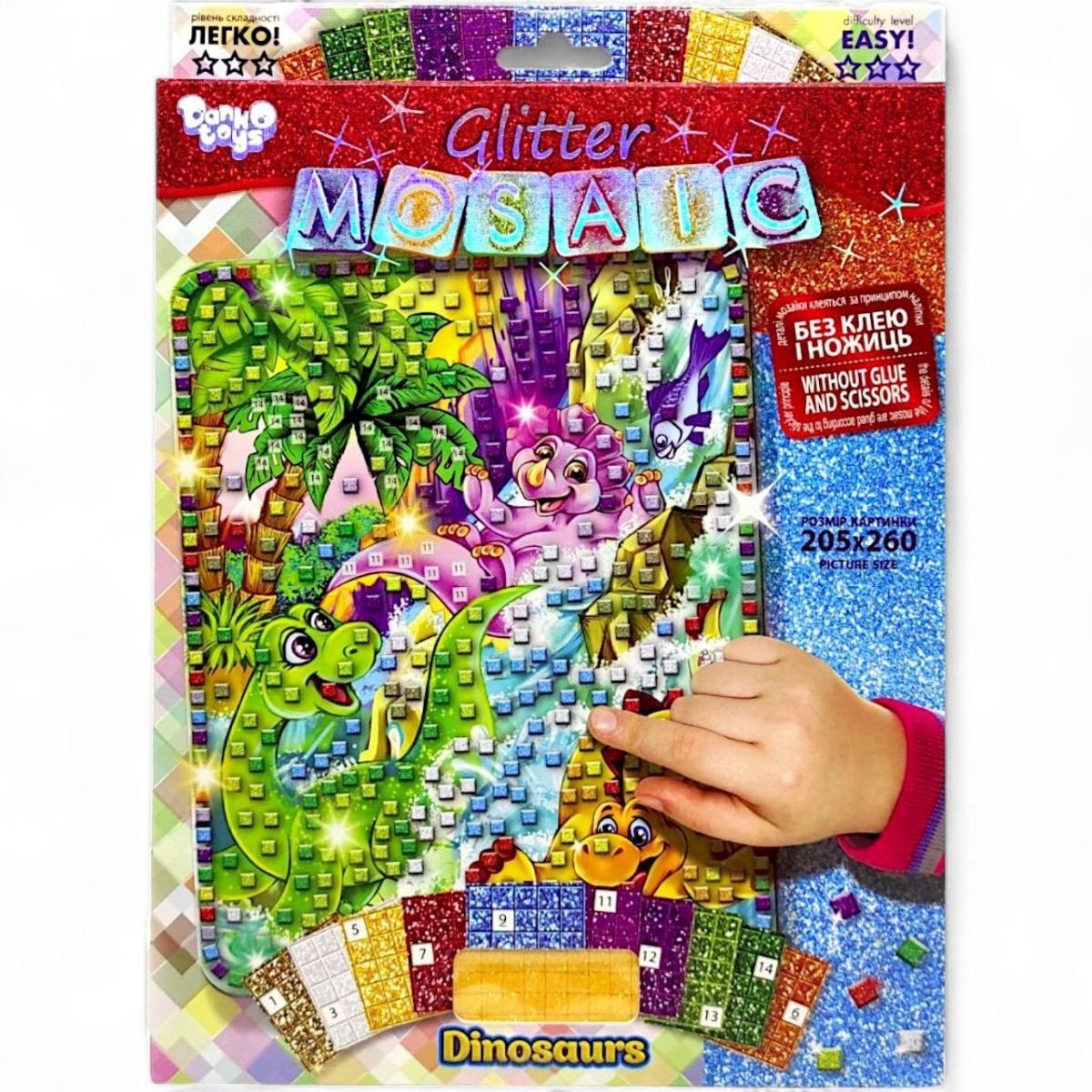 Дитячий набір для творчості "Блискуча мозаїка". Метод створення картин за номерами дуже простий і доставить масу задоволення. Зазначені на схемі кольору рекомендовані для отримання результату, зображеного на упаковці. Картину, так само, можна прикрасити гліттернимі наклейками на свій розсуд. Розмір картинки: 20,5х26 см.