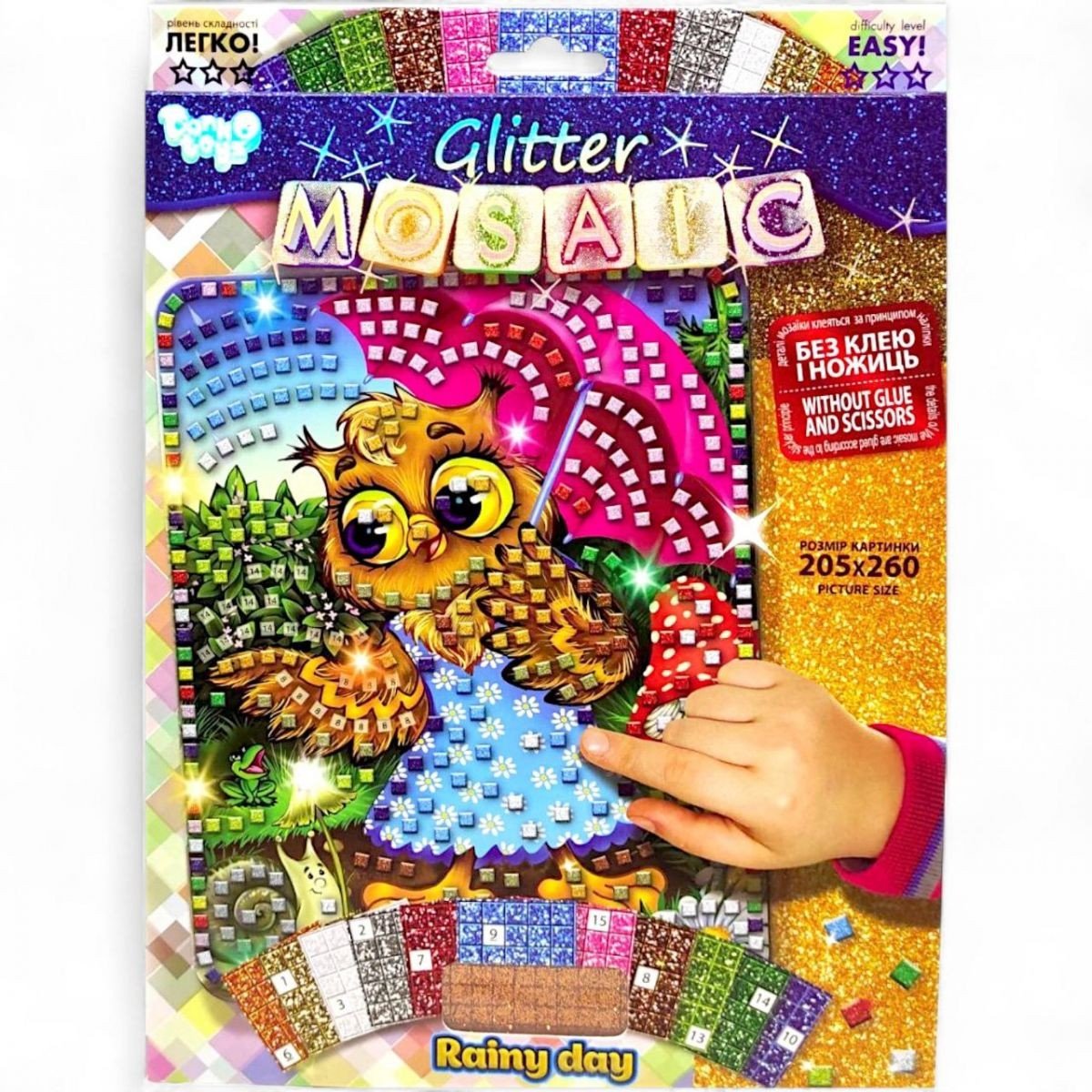 Дитячий набір для творчості "Блискуча мозаїка". Метод створення картин за номерами дуже простий і доставить масу задоволення. Зазначені на схемі кольору рекомендовані для отримання результату, зображеного на упаковці. Картину, так само, можна прикрасити гліттернимі наклейками на свій розсуд. Розмір картинки: 20,5х26 см.