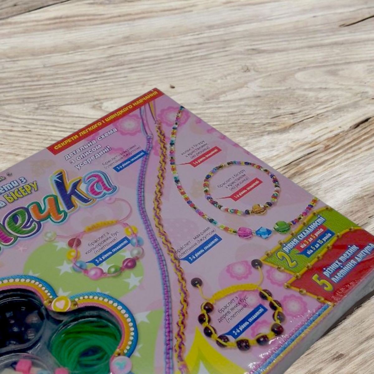Бренд: Dankotoys Мова: Російська Упаковка: Коробка Колір: Різнобарв'я Вага з упаковкою: 170 г Габарити в упаковці: 29 x 3.5 x 20 см Габарити без упаковки: 29 x 4 x 20 см Країна виробник: Україна Матеріал: Комбінований Комплектація: Різнокольорова нитка "джгут", еластична нитка, різнокольорові намисто, полімерні кристали, різнокольоровий бісер, металевий замок - карабін, деревʼяні намисто, детальна покрокова інструкція