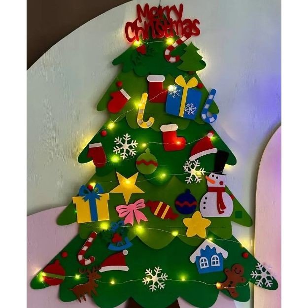 Опис Набір для творчості “Фетрова ялинка”, іграшки на липучках + гірлянда (висота - 97 см)