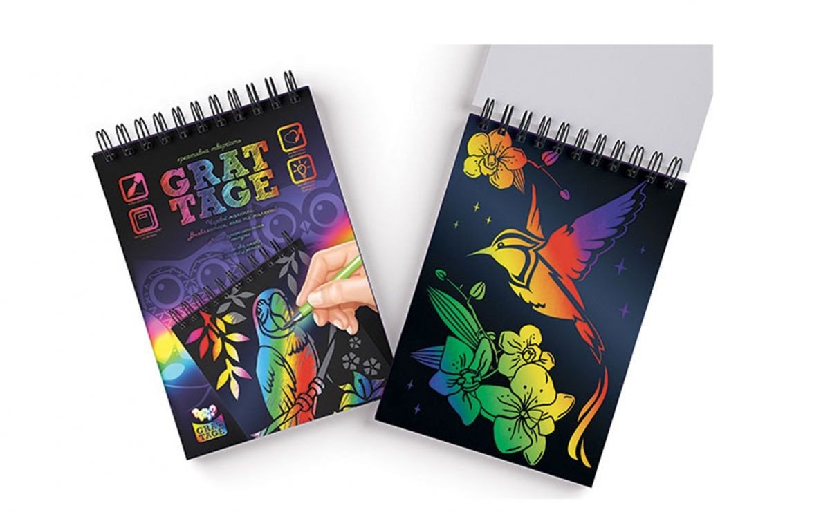 Бренд: Dankotoys Упаковка: Пакет Колір: Різнобарв'я Країна виробник: Україна Матеріал: Папір Комплектація: Блокнот "Гратаж", штихель