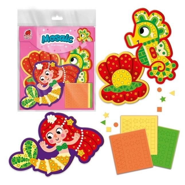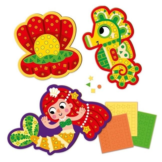 Набір для дитячої творчості "Русалонька". Складається з 3-х яскравих картонних основ та трьох мʼяких планшетів з елементами мозаїки. На основах контуром зображені підказки про те, які елементи потрібно клеїти. Набір допомагає малюкам розвинути дрібну моторику та відкрити нові творчі здібності. Розмір основи: 19х4 см.