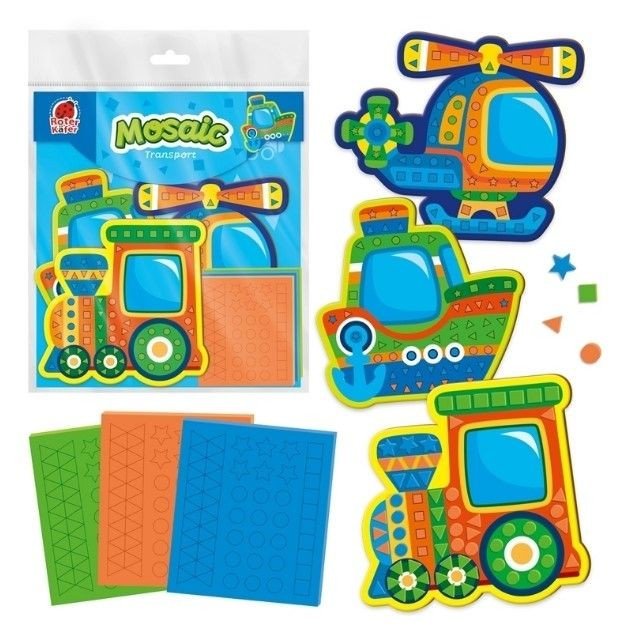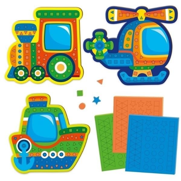 Набір для дитячої творчості "Транспорт". Складається з 3-х яскравих картонних основ та трьох мʼяких планшетів з елементами мозаїки. На основах контуром зображені підказки про те, які елементи потрібно клеїти. Набір допомагає малюкам розвинути дрібну моторику та відкрити нові творчі здібності. Розмір основи: 19х4 см.