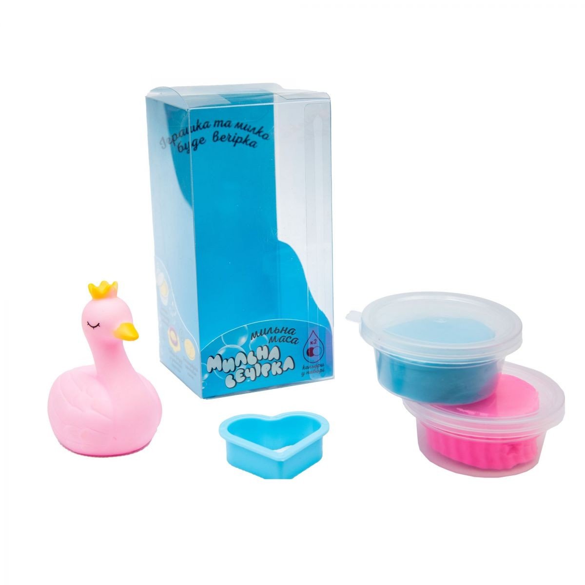 Упаковка: Коробка Колір: Різнокольоровий Вага з упаковкою: 160 г Габарити в упаковці: 6.5 x 6.5 x 13 см Країна виробник: Україна Матеріал: Комбінований Комплектація: 2 мильні маси, формочка, іграшка