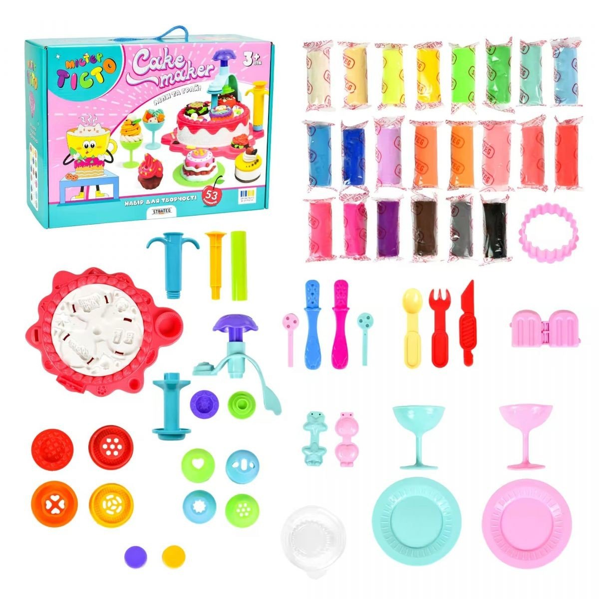 Набір для творчості "Містер тісто. Cake Maker". Легке та повітряне тісто для ліплення - чудовий вибір для дитячої творчості! У комплекті присутньо 31 елементи для зручного створення фігурок. Мʼяке та еластичне тісто легко розминається, не липне до рук і дозволяє втілити будь-які фантазії. Набір допоможе зліпити найкрасивіші тістечка, а 22 кольори тіста допоможуть якнайкраще урізноманітнити вироби!