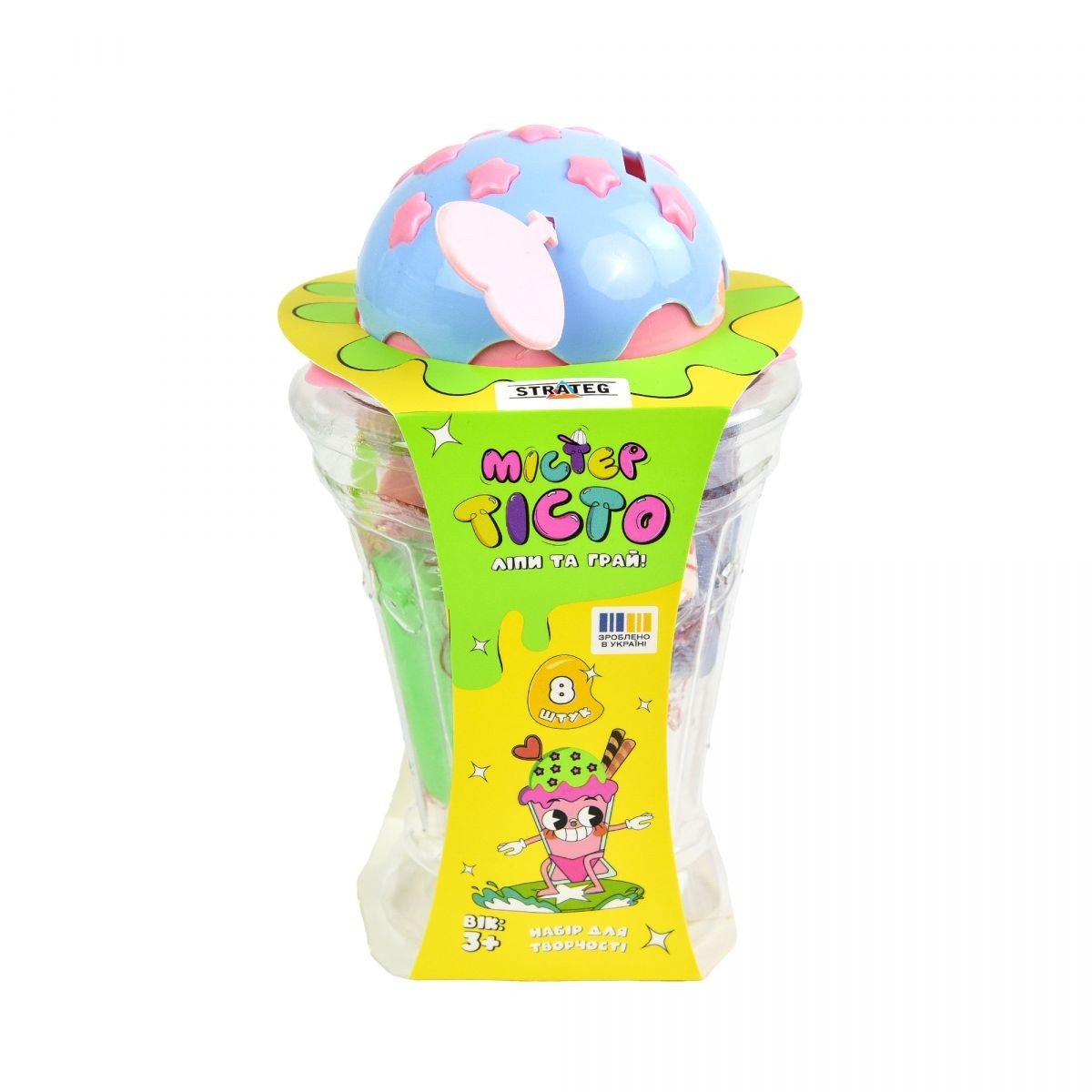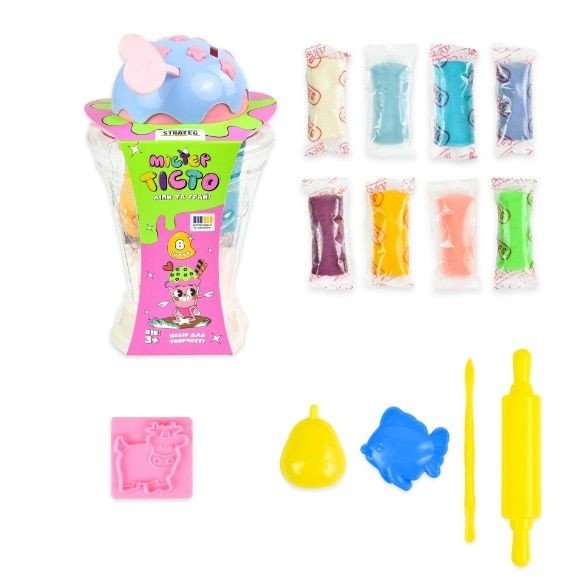 Бренд: Strateg Упаковка: Шоубокс Колір: Різнобарв'я Вага з упаковкою: 221 г Габарити в упаковці: 9 x 9 x 16 см Країна виробник: Україна Матеріал: Комбінований Комплектація: аксесуари, 8 тіста для ліплення
