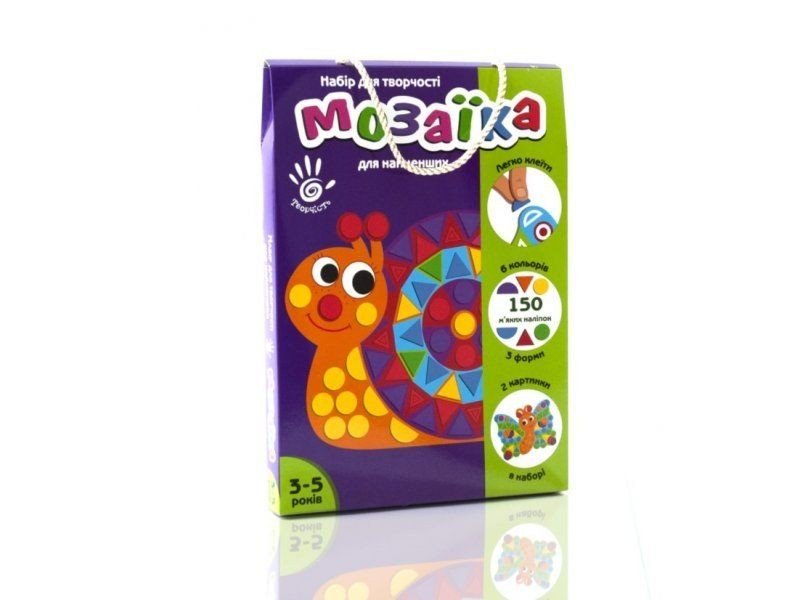 Набір для творчості "Мозаїка". У наборі є: 2 картинки; 6 різнокольорових планшетів з мозаїкою. Розмір картинки - 20х27 см.