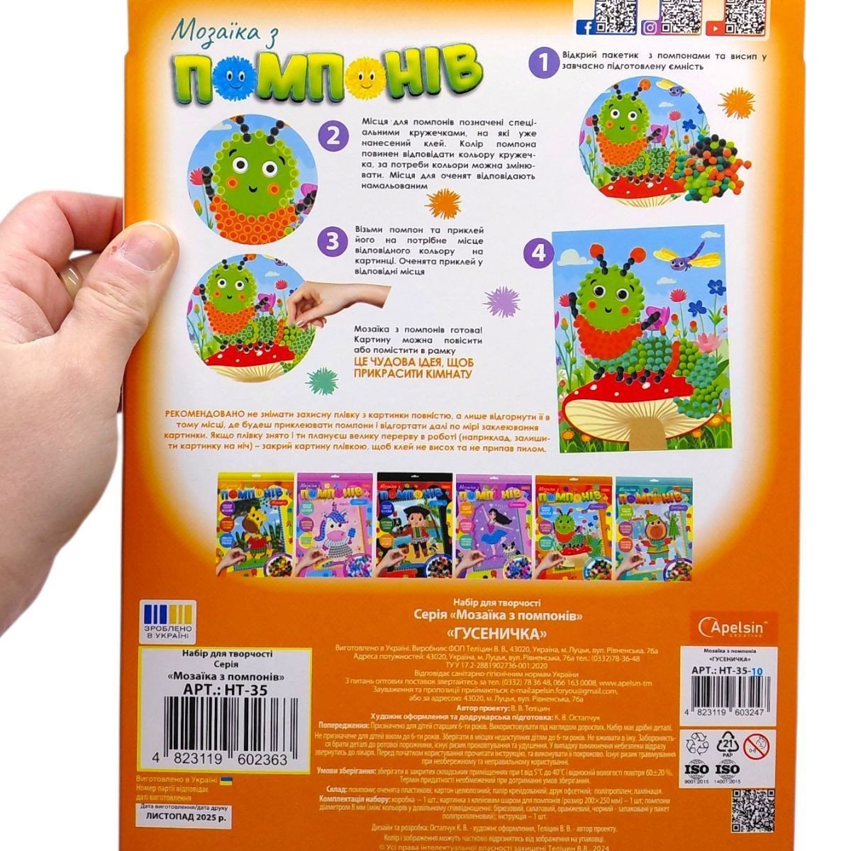 Опис Набір для творчості "Мозаїка з помпонів: Жирафка"