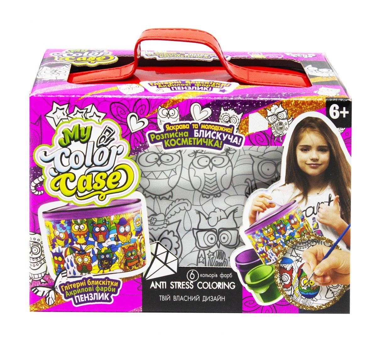 Цікавий набір для творчості, який допоможе розвивати у дитини сприйняття кольору, креативність, а також є відмінним антистрес. У наборі є косметичка, яку дитина зможе розфарбувати так, як йому подобається і прикрасити. Так само, є палітра фарб на 6 кольорів, блискітками, акриловий лак і пензлик. Виконано набір з якісних і безпечних матеріалів. Для дітей від 5 років.