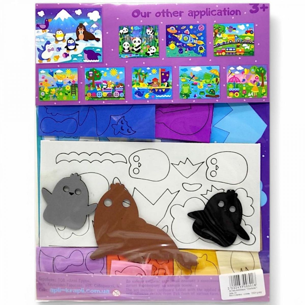 Бренд: Аплі Краплі Упаковка: Пакет Колір: Різнобарв'я Вага з упаковкою: 60 г Габарити в упаковці: 0.3 x 22 x 27.3 см Країна виробник: Україна Матеріал: Комбінований Комплектація: картонна основа з нанесеним контуром; деталі з фоамірану на клейовій основі