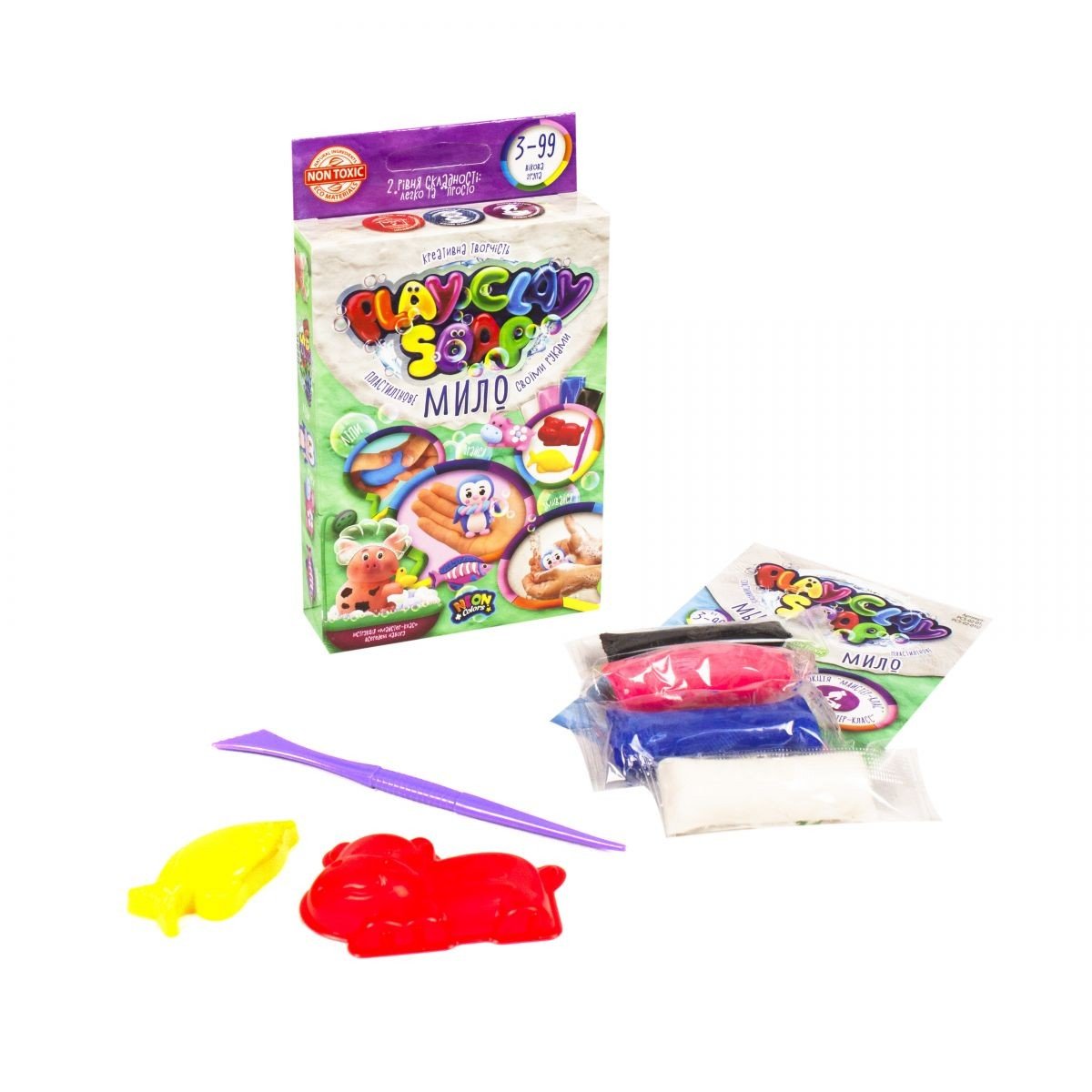 Набір для творчості "Пластилінова мило". Набір являє собою пластилін, з якого можна ліпити різноманітні фігурки і іграшки, а потім мити ними ручки і купатися. У набір входять: мильна основа (4 кольори), 2 формочки, стек, інструкція.