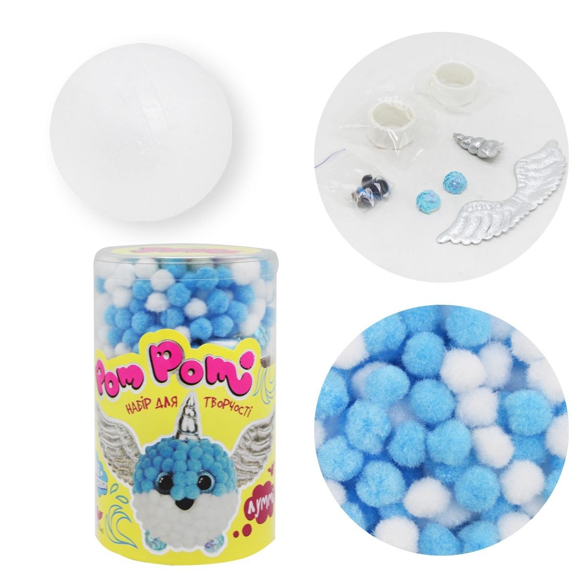 Набір для творчості "Pom pom". За допомогою такого набору можна створити милого пухнастого звірка. У комплекті є все для цього необхідне: пінопластовий шар-основа, помпони 2 кольори, клейові точки, крила, очі, ніжки, носик, вушка. Виконано з якісних і безпечних матеріалів. Для дітей від 3-х років.