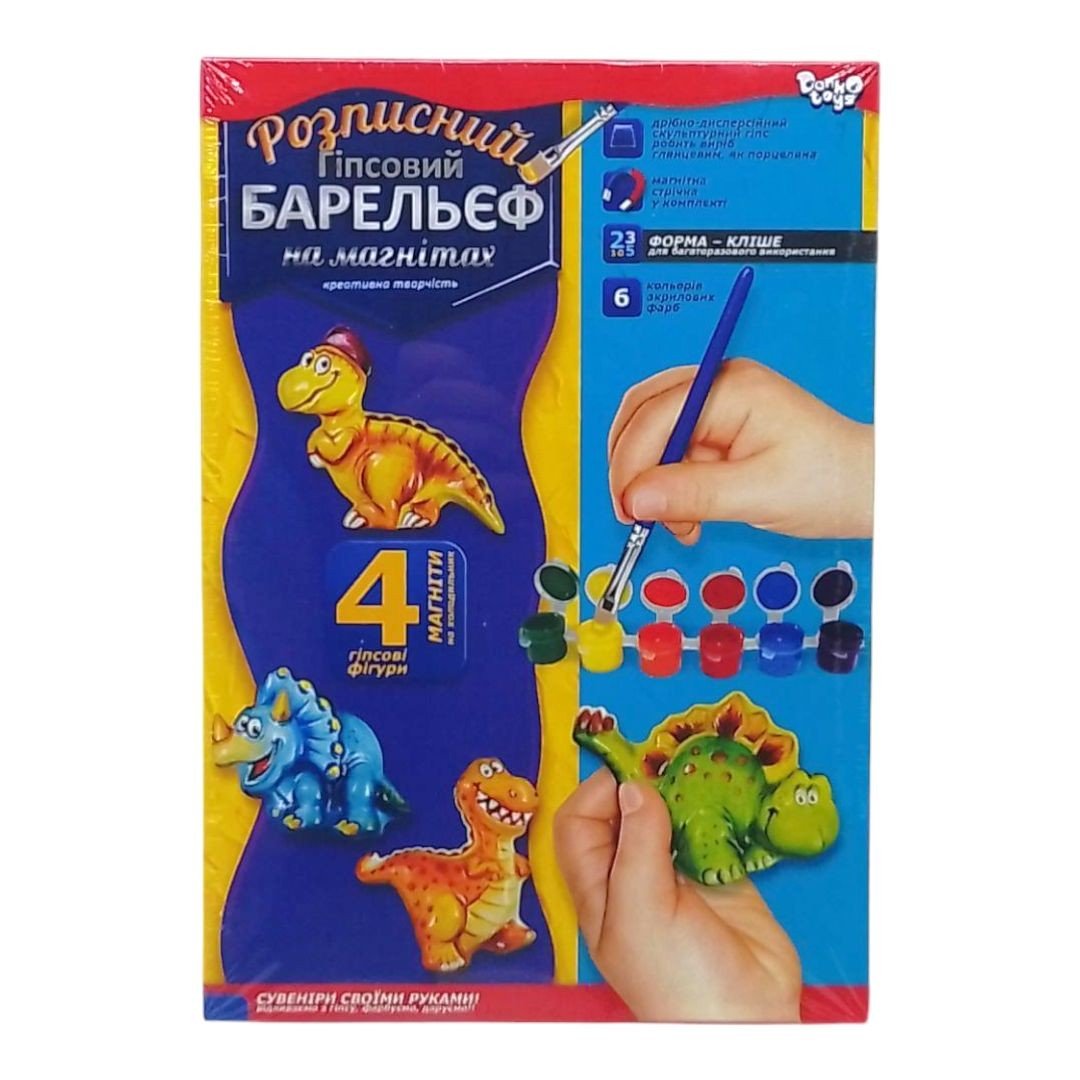 Опис Набір для творчості, розписний гіпсовий барельєф на магнітах, "Динозаври"