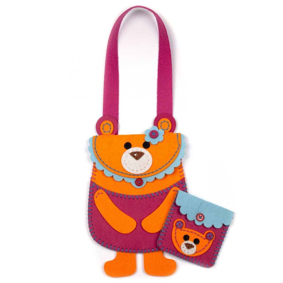 Набір для творчості з допомогою якого можна створити милі сумочку і гаманець із фетру. У комплекті є все необхідне: фетрові деталі, набір ниток, голка, гудзики. Виконано з якісних і безпечних матеріалів.