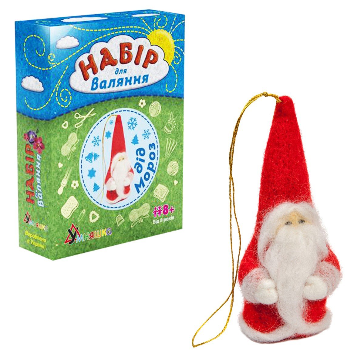Набір для творчості "Валяння" - це особлива техніка рукоділля, в процесі якої з вовни для валяння створюється малюнок на тканині або повсті, об'ємні іграшки, панно, декоративні елементи, предмети одягу або аксесуари. Даний набір пропонує Вам створити оригінального Діда Мороза. Все що потрібно для творчості вже є в наборі.